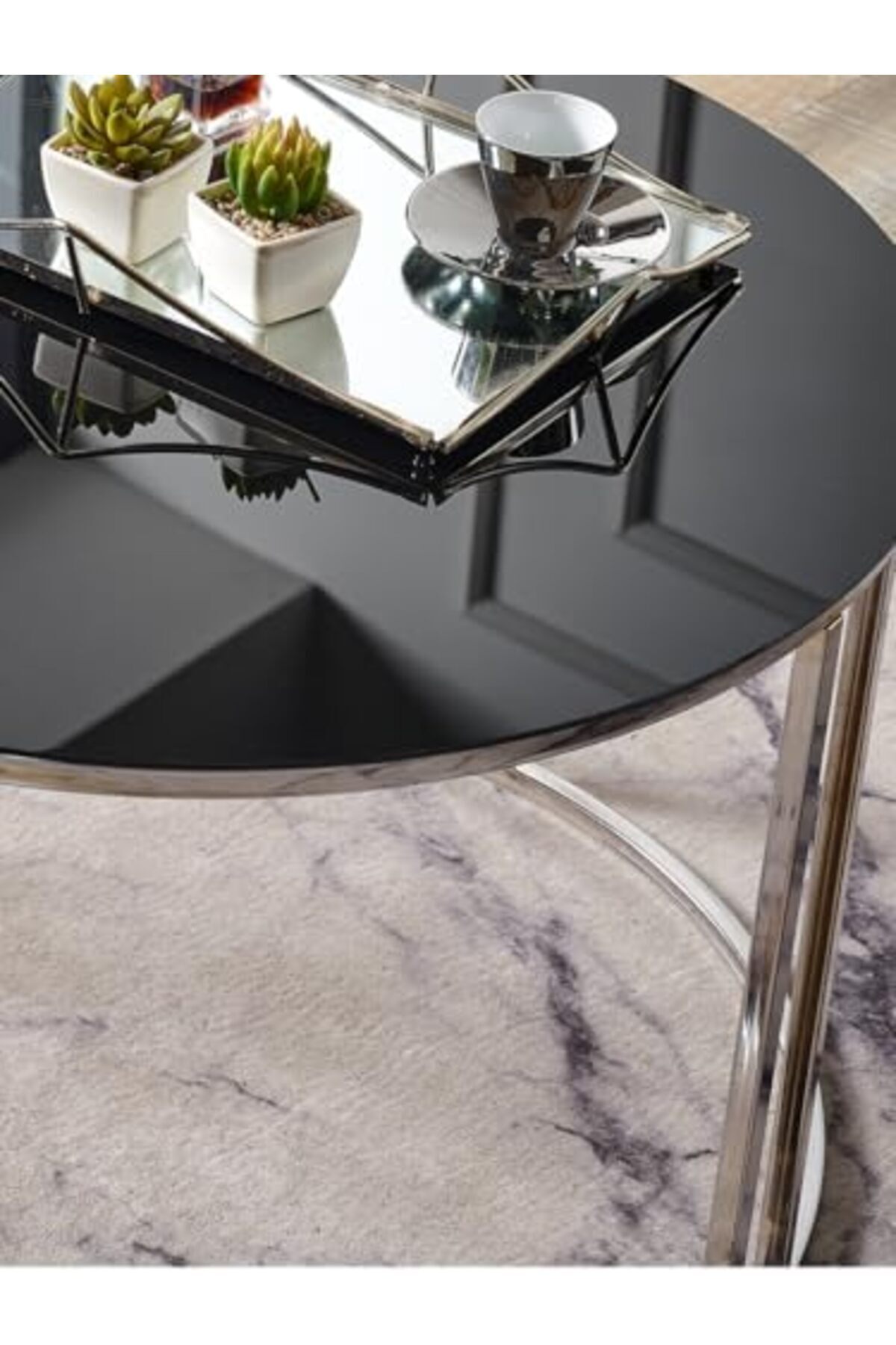 TEMPERLİ KIRILMAYA KARŞI DAYANIKLI CAM Orta Temperli SİYAH AYNALI (Kırılmaz) Cam (GÜMÜŞ) Metal Ayak Orta Sehpa