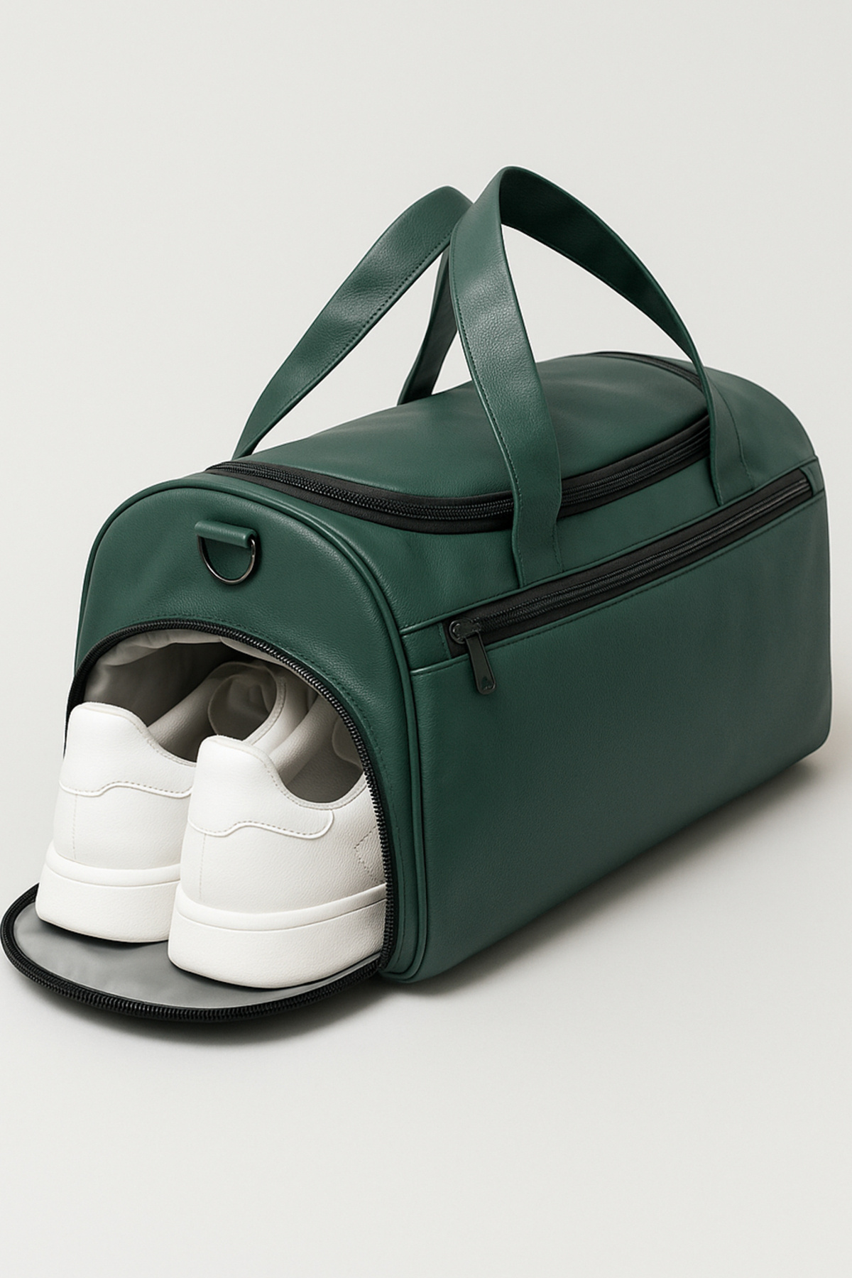Haki Suni Deri Unisex Yan Ayakkabı Bölmeli Önü Cepli Seyahat Fitness Spor Çantası -00124 Ürünümüz 1.kalite siyah suni deriden yapılmış silindir şeklinde bir seyahat, fitness ve spor çantasıdır.