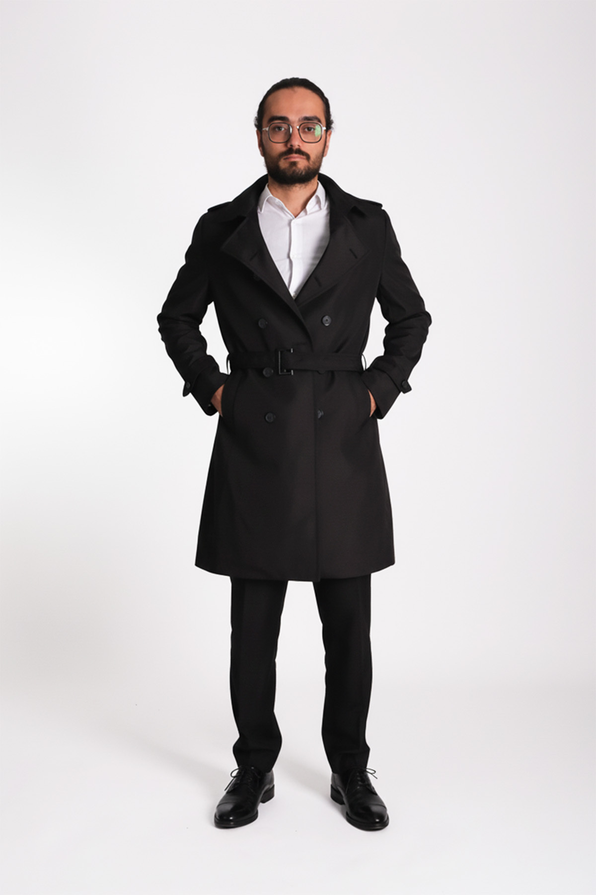KARAN Erkek Regular Fit Kruvaze Kapama Kemerli Apoletli Uzun Trençkot