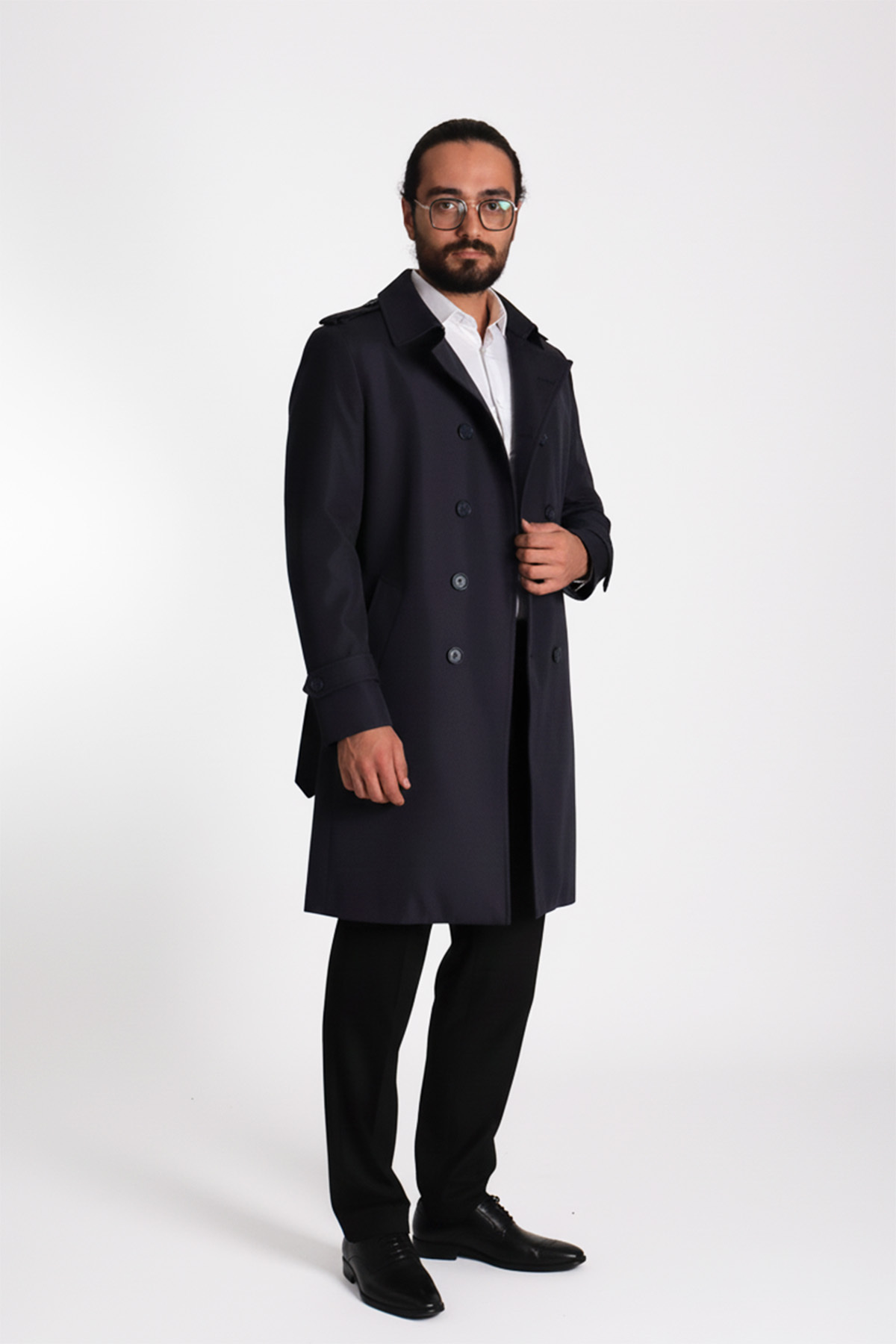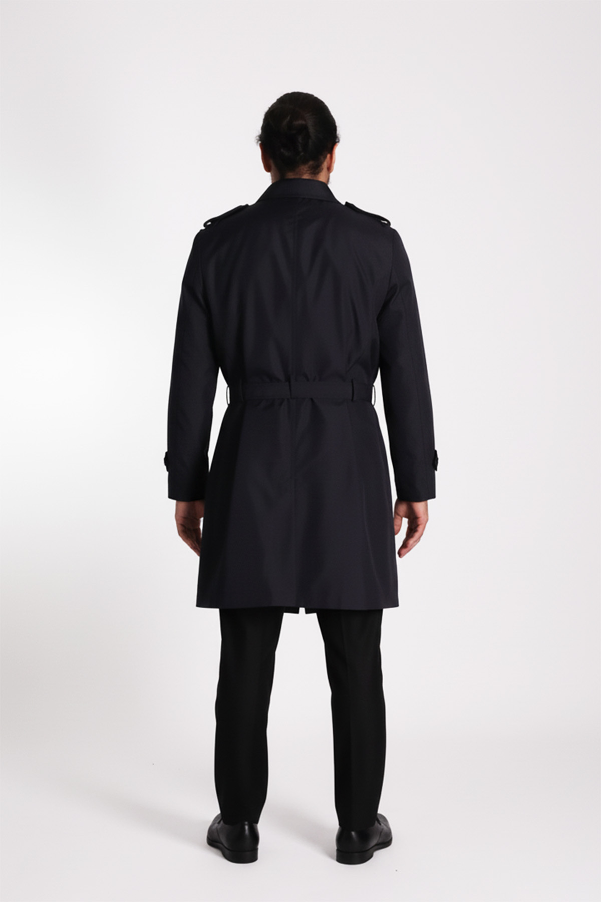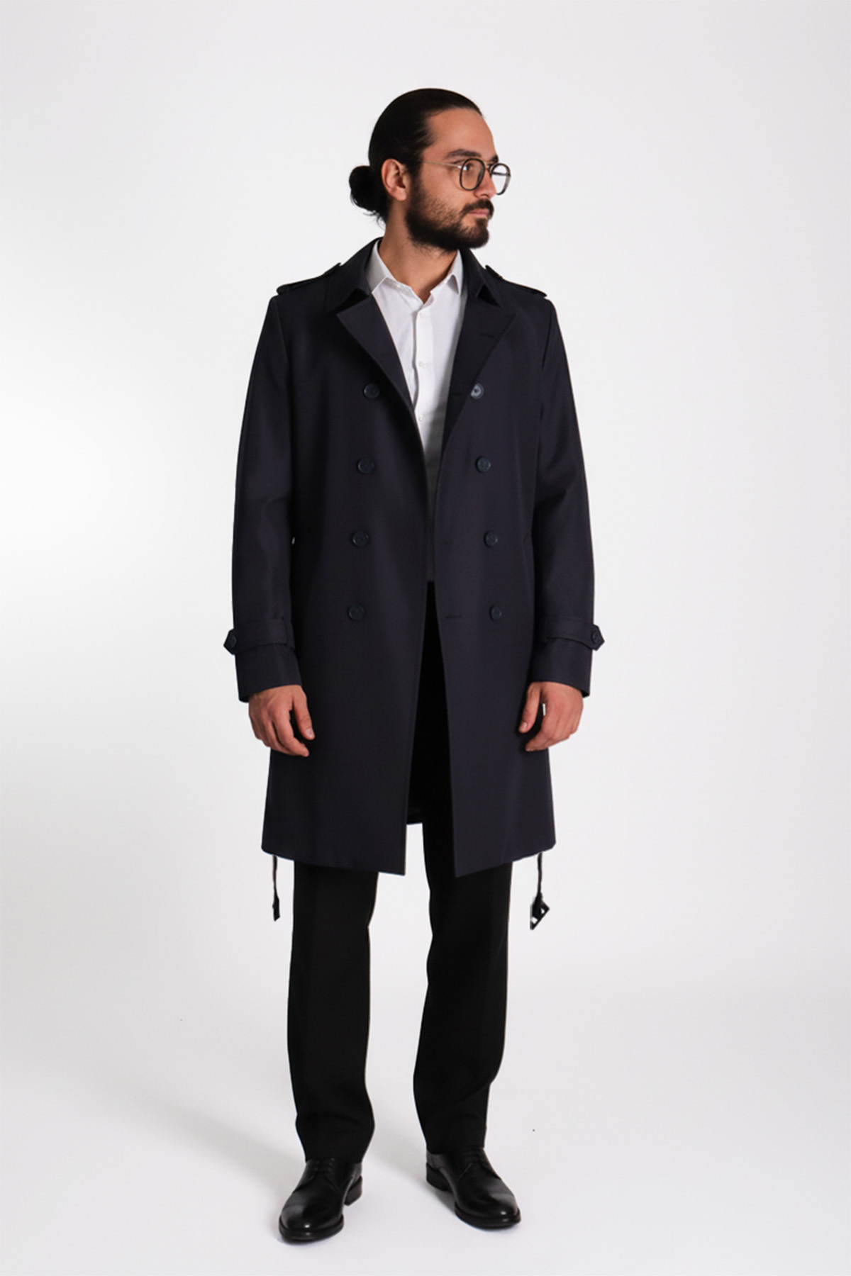 KARAN Erkek Regular Fit Kruvaze Kapama Kemerli Apoletli Uzun Trençkot
