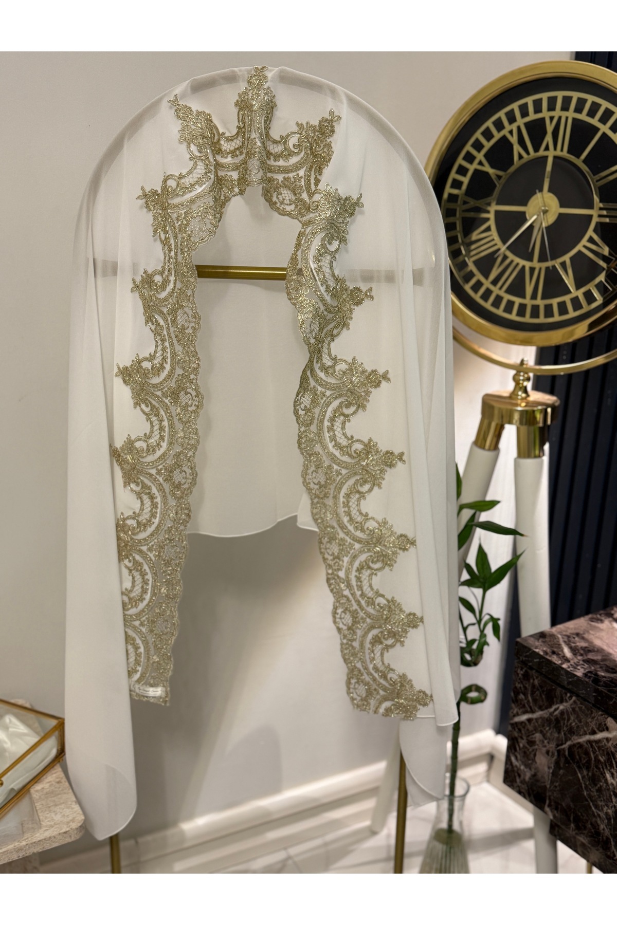 Gold dantelli şifon şal Mevlüt şalı olarak tercih edilmektedir.