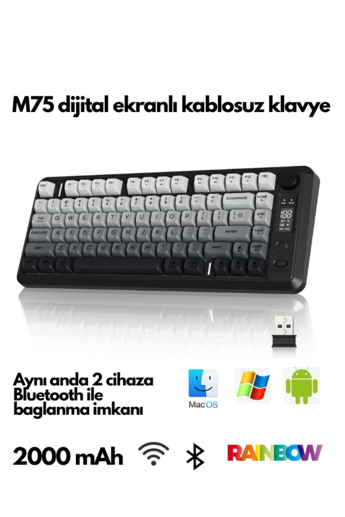 [Akıllı Ekran ve Çok İşlevli Düğme] M75 oyun klavyesi akıllı bir tasarıma sahiptir.
