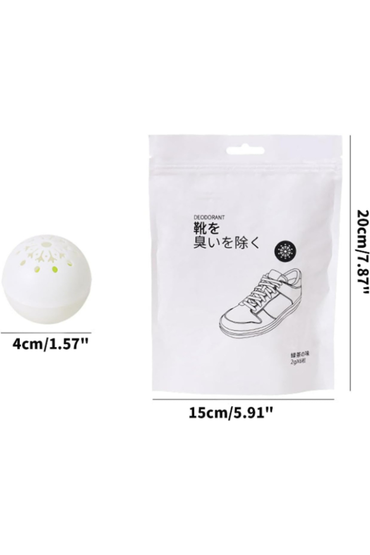 6 adet yuvarlak koku giderici top içerir ve her biri ayakkabınızın içine kolayca yerleştirilebilir.