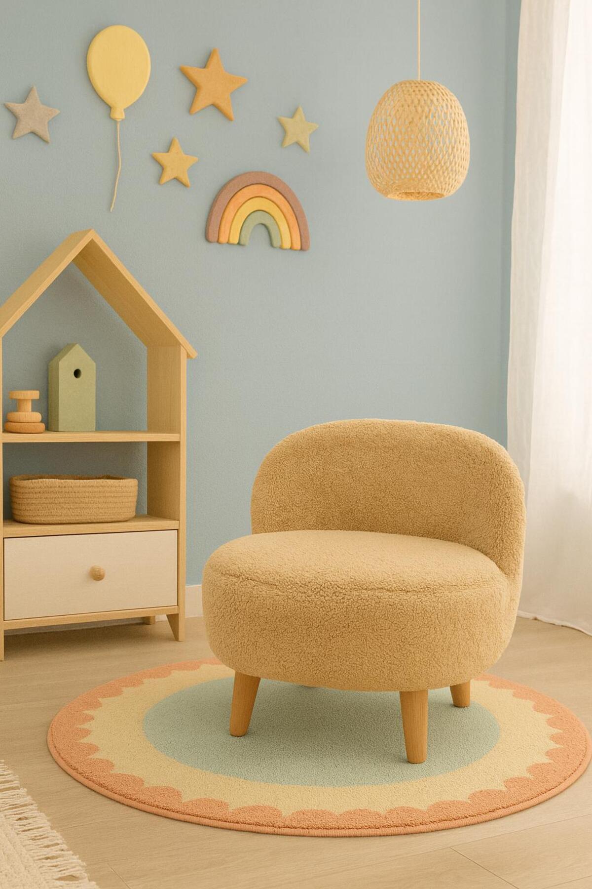- Yumuşak peluş kumaşı ile çocukların rahat etmesini sağlar ve konforlu bir oturma deneyimi sunar.