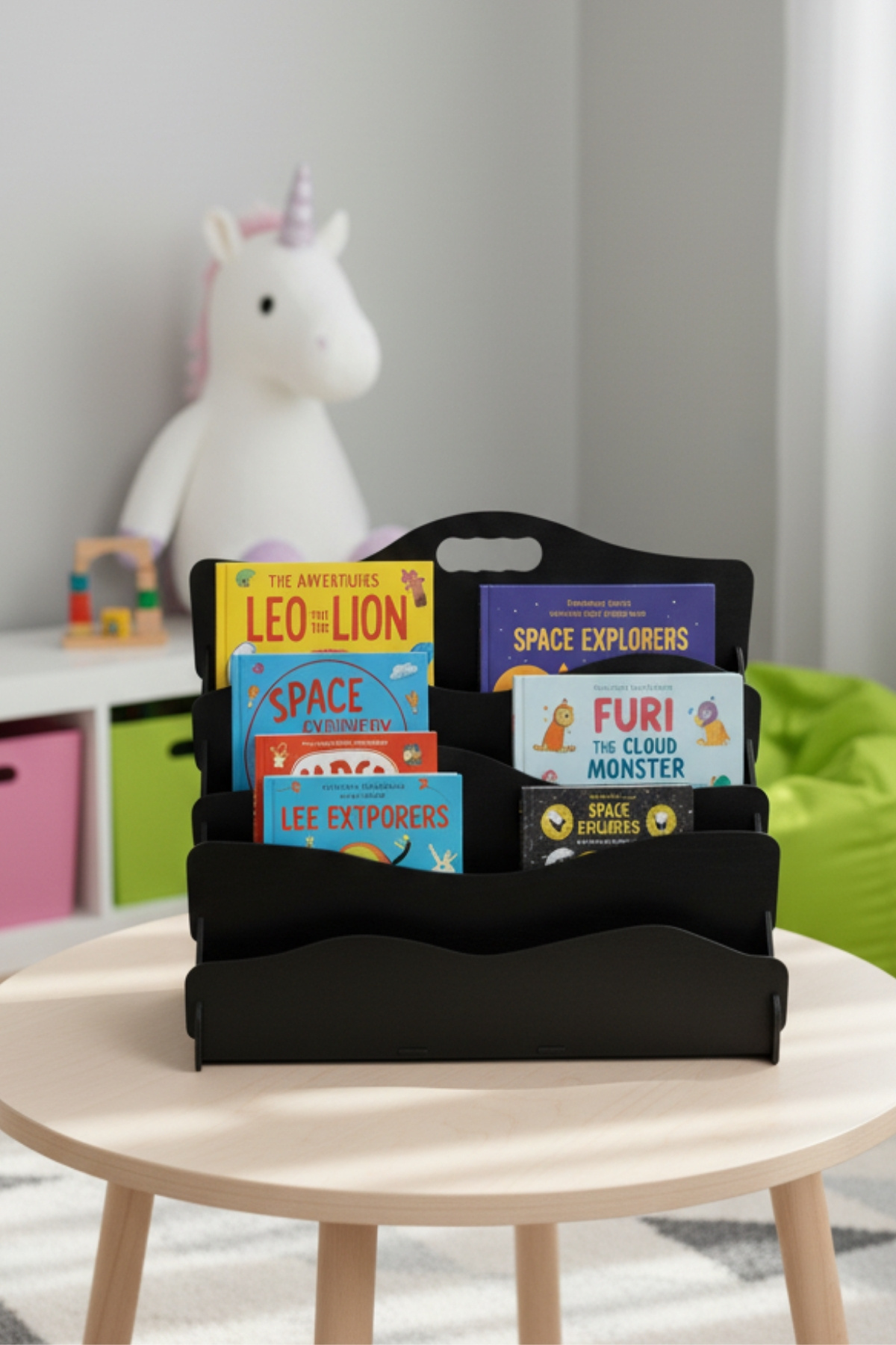 Minimalist görünümüyle her ortama uyum sağlar, kitaplara kolay erişim sunar ve çocukların kendi düzenini oluşturmasına katkı sağlar.