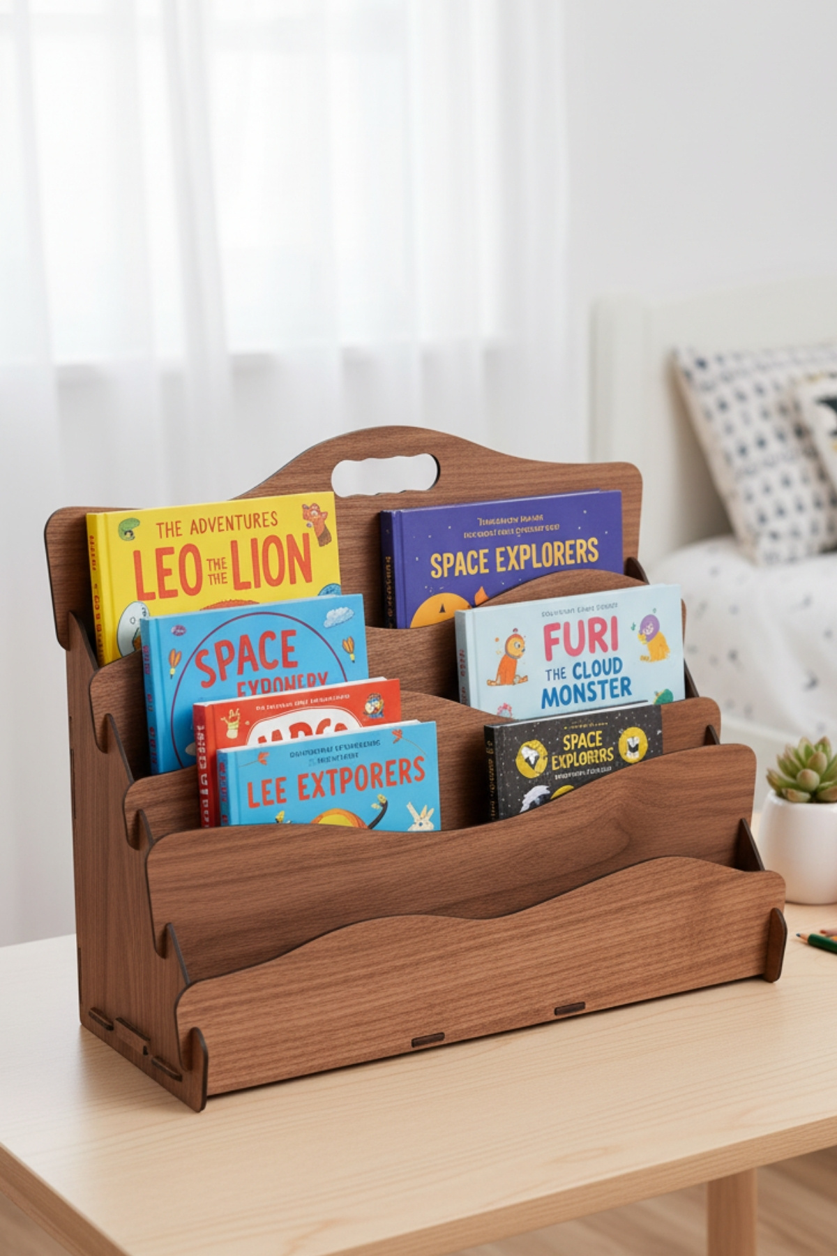 Carry Montessori 4 Raflı Dalgalı Ahşap Mini Kitaplık – Çocuk Odası Kitaplık – Masaüstü Mini Kitaplık Çocuğunuzun kitaplarını düzenli tutarken okuma alışkanlığı kazanmasına yardımcı olacak şık ve işlevsel bir tasarım! Carry Montessori 4 Raflı Ahşap Mini Kitaplık, çocuk odaları ve çalışma alanları için özel olarak tasarlanmıştır.