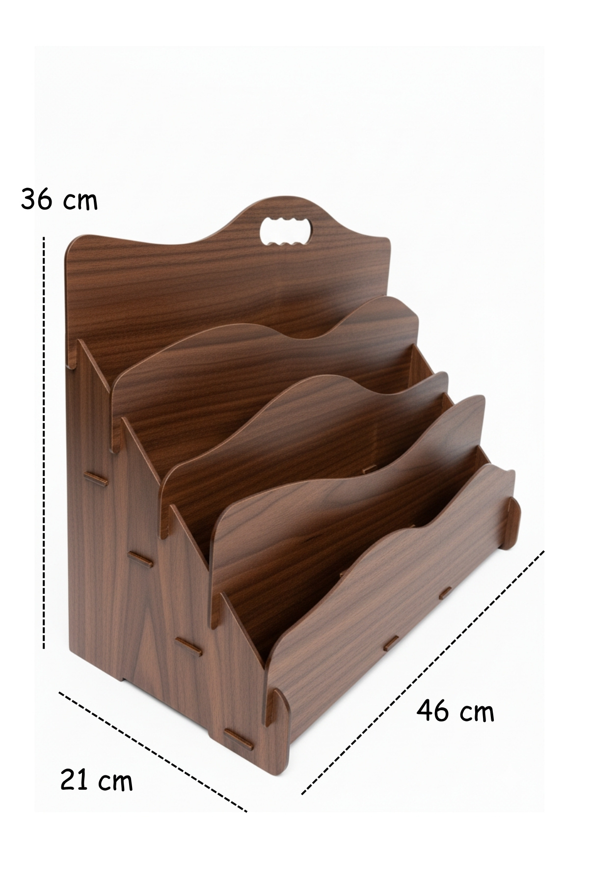 • Ürün Özellikleri: Boyut: 21 × 46 × 36 cm Malzeme: 3 mm MDF Lam – dayanıklı, uzun ömürlü ve kolay temizlenebilir yüzey Montaj: Demonte (kolay kurulum, vidalama gerektirmez) Tasarım: Montessori yaklaşımına uygun, sade ve işlevsel yapı Kullanım Alanı: Çocuk odası, çalışma masası, kreş, anaokulu veya kitap köşeleri Avantajları: Çocukların kitaplarını kendi başına alıp yerleştirmesini teşvik eder.