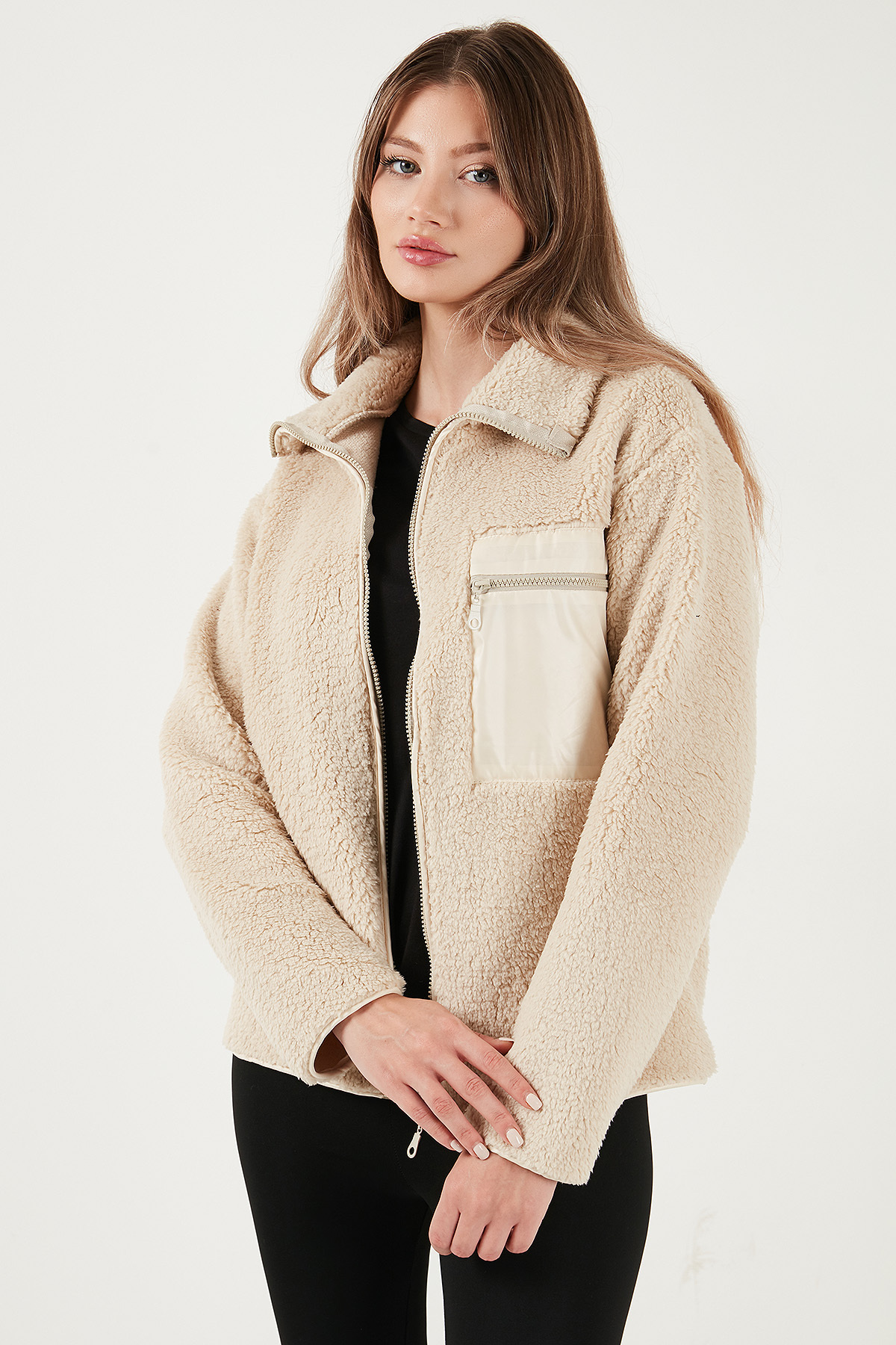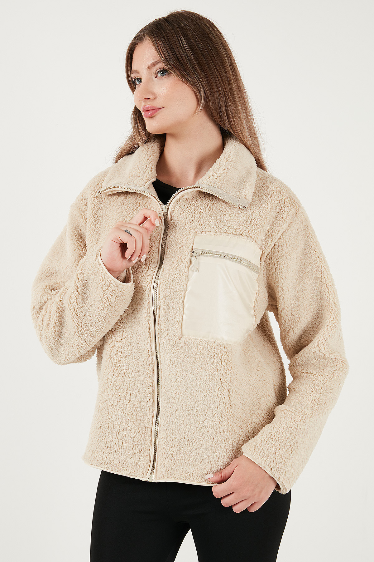 Regular Fit Klasik Yaka Göğüs Cep Detaylı Peluş Hırka Polar POLAR 5866437