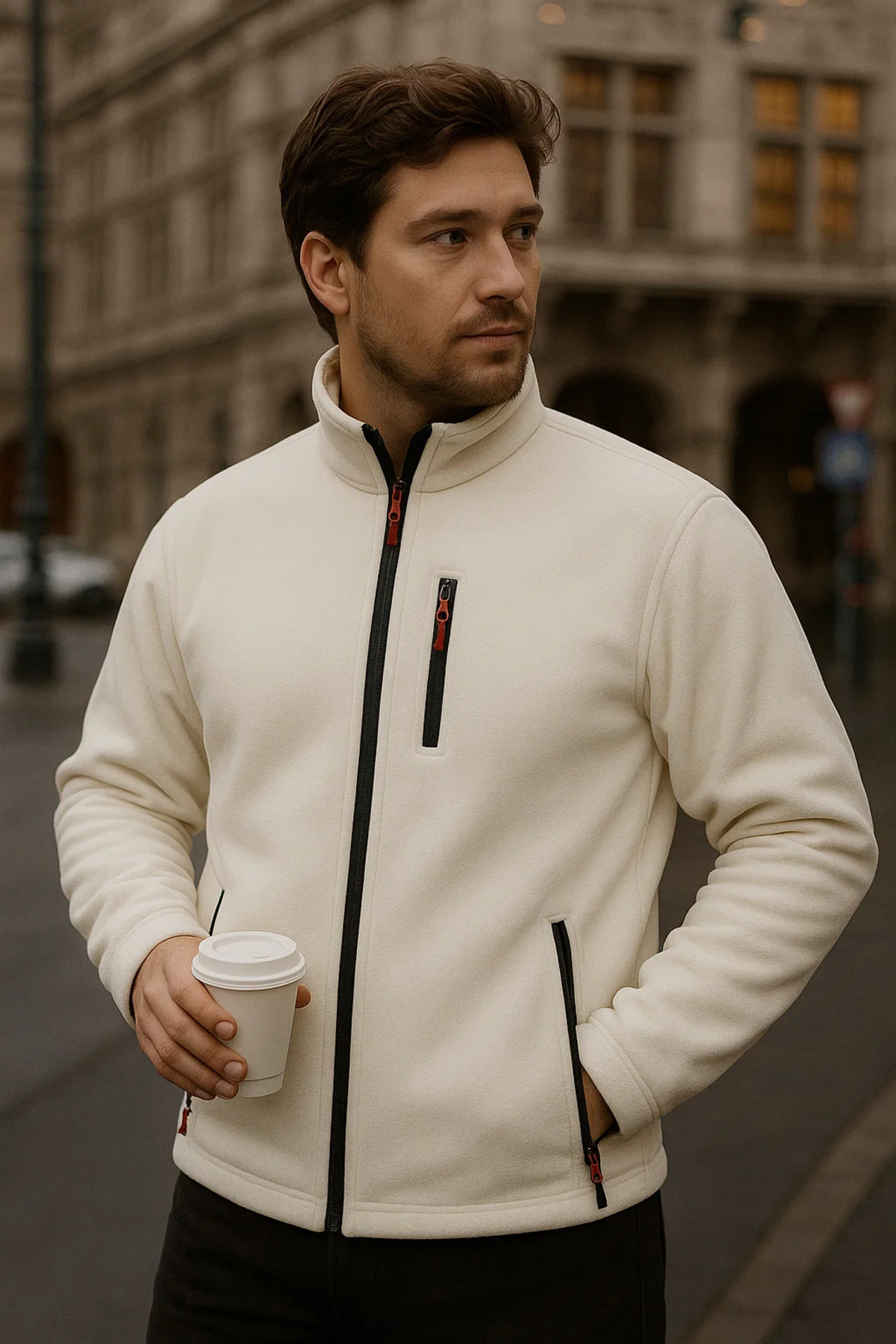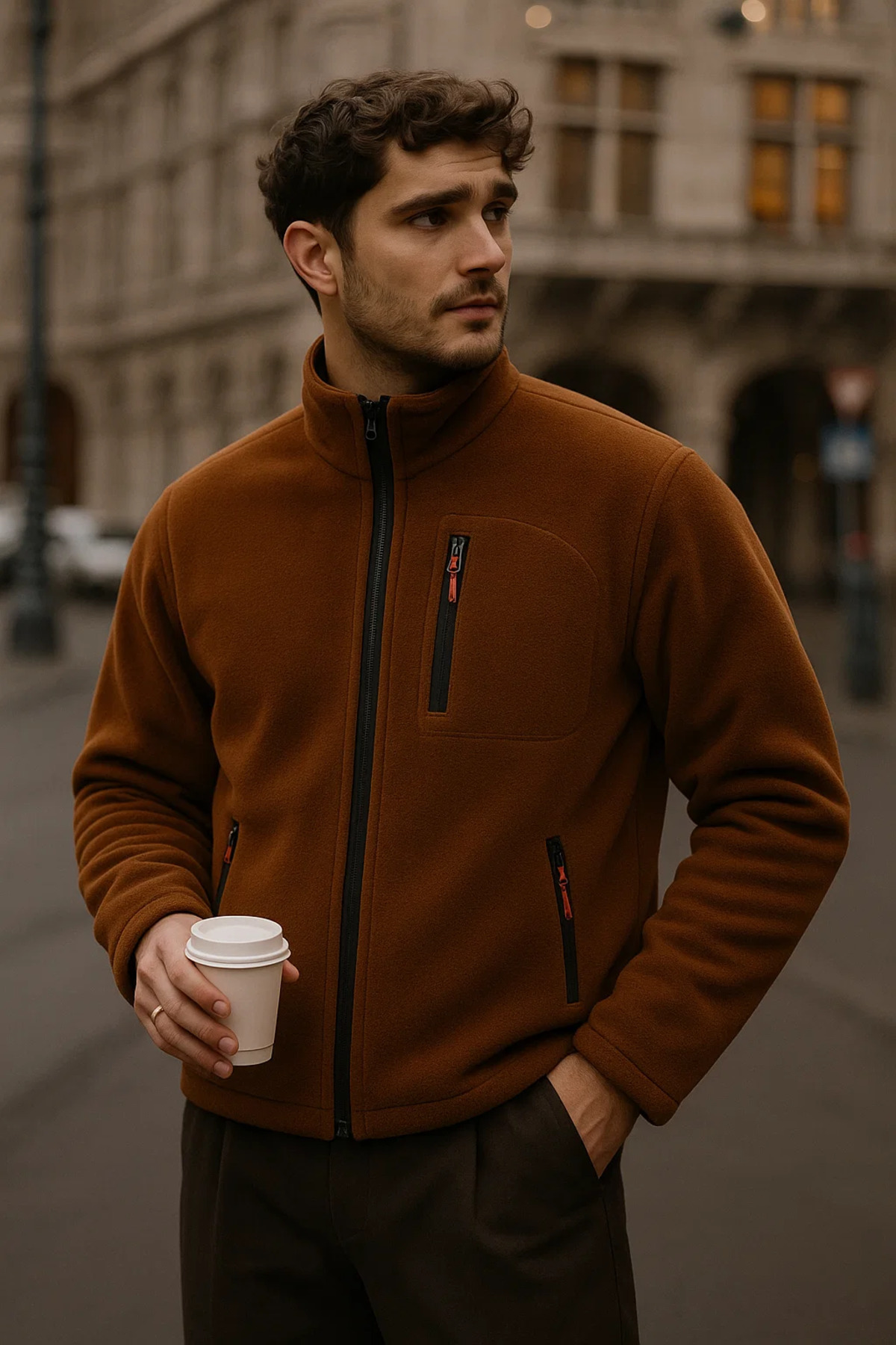 Erkek fermuarlı cep detaylı oversize polar ceket, kış aylarında hem sıcak hem modern bir stil arayanlar için tasarlandı.
