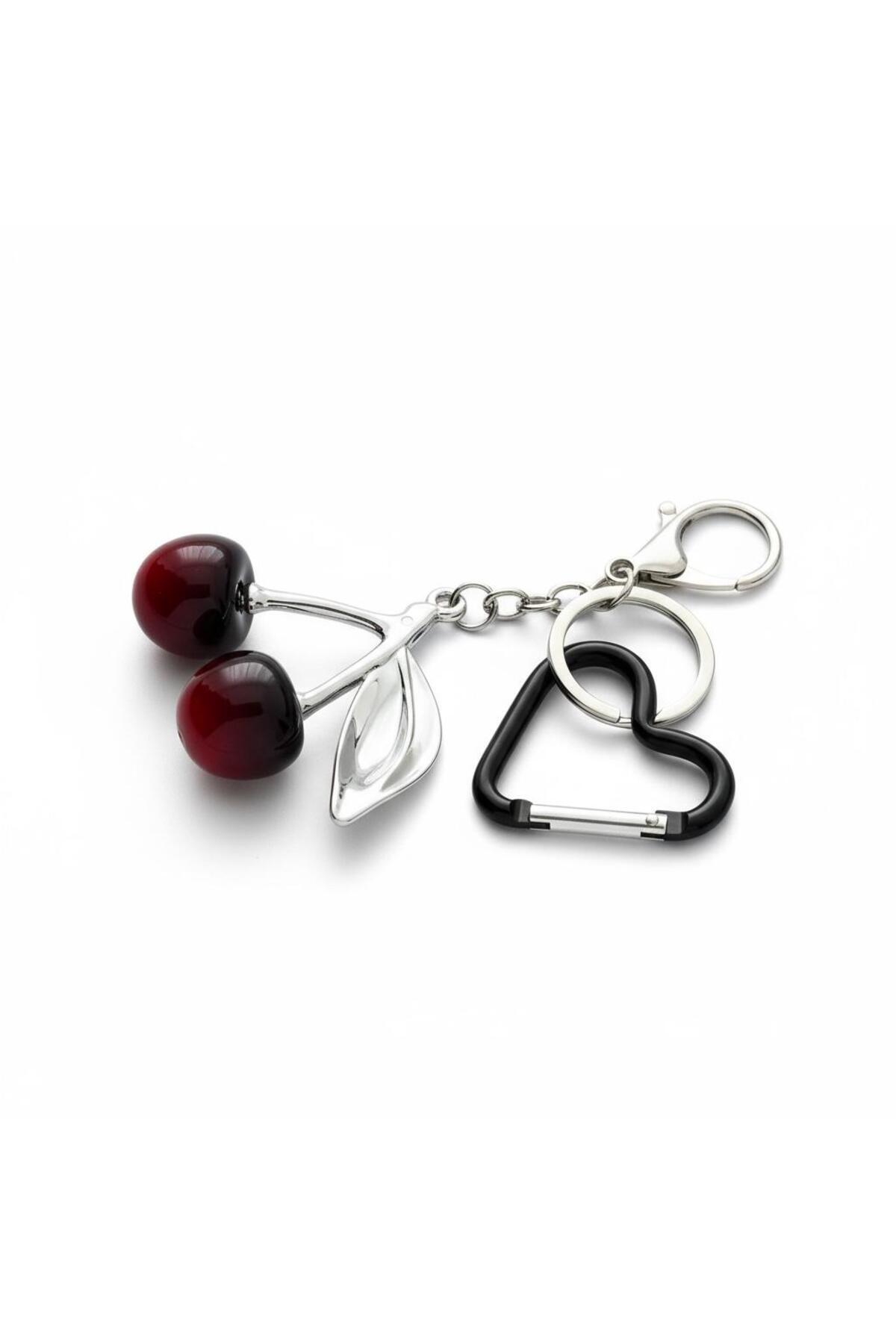 • ÇANTA CHARMI ŞIK KİRAZ DETAYLI KALP MODELLİ