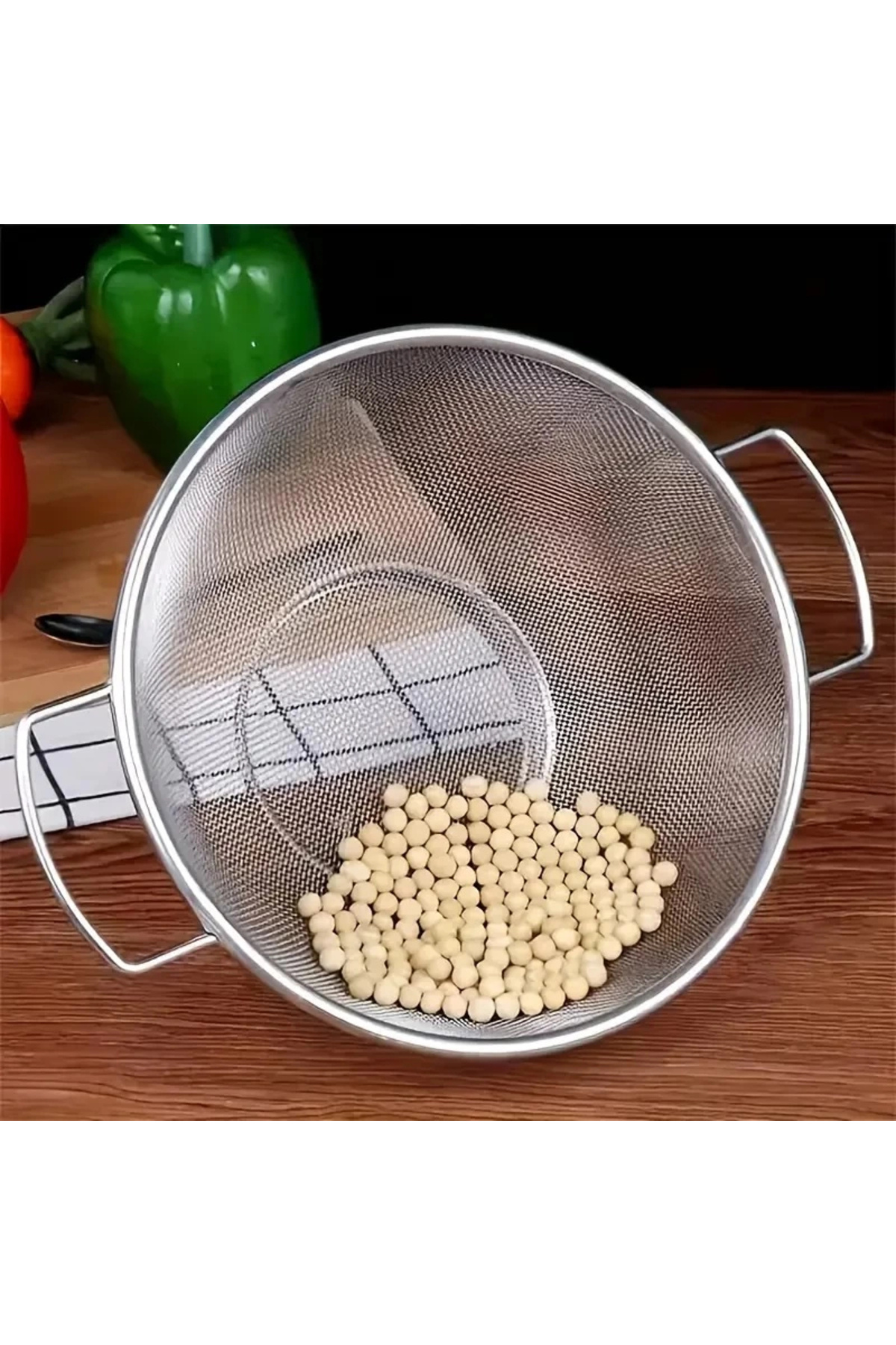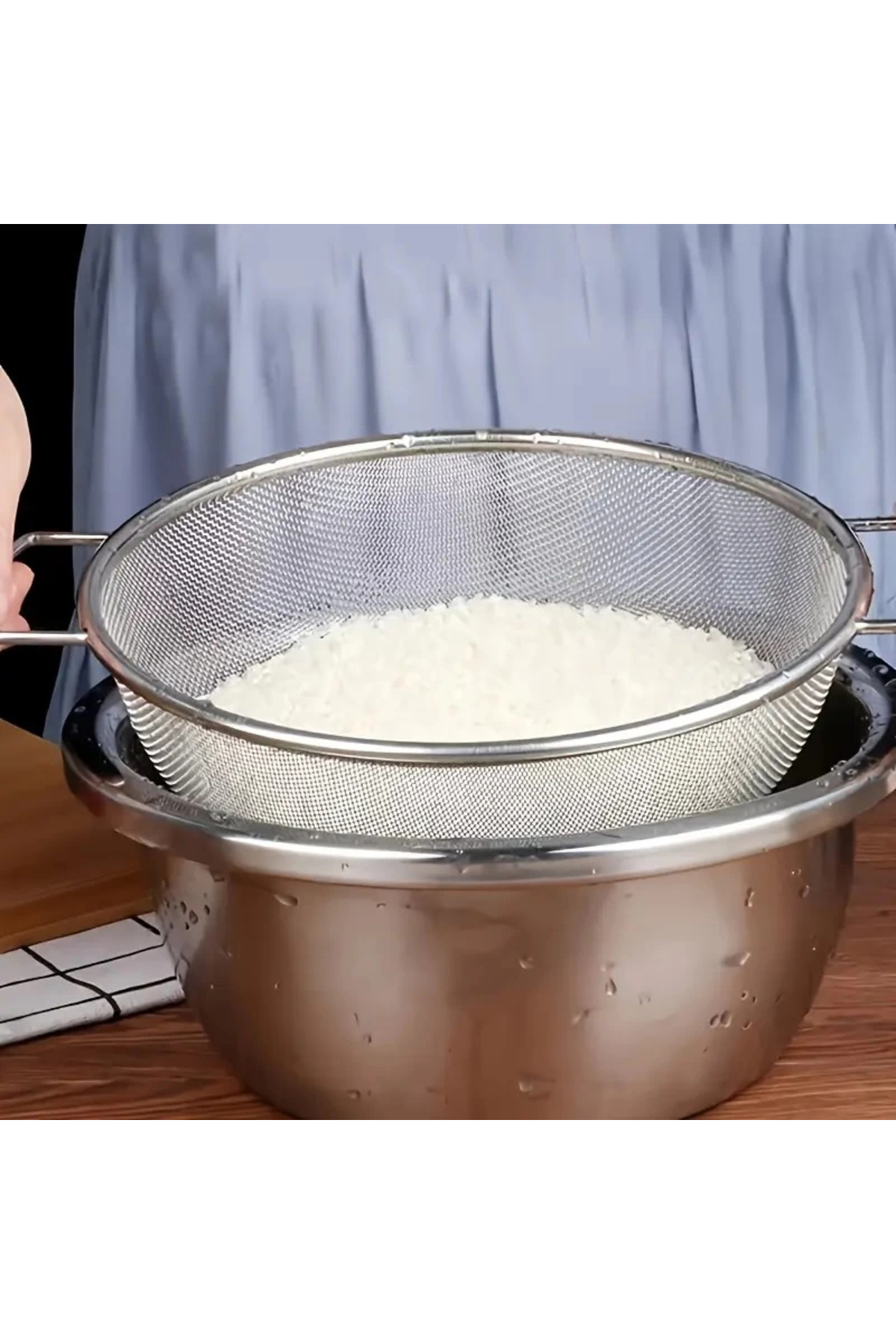 Paslanmaz Çelik Kulplu Tel Çok Amaçlı Makarna Un Meyve Sebze 3'lü Süzgeçi 26 22 20 Cm
