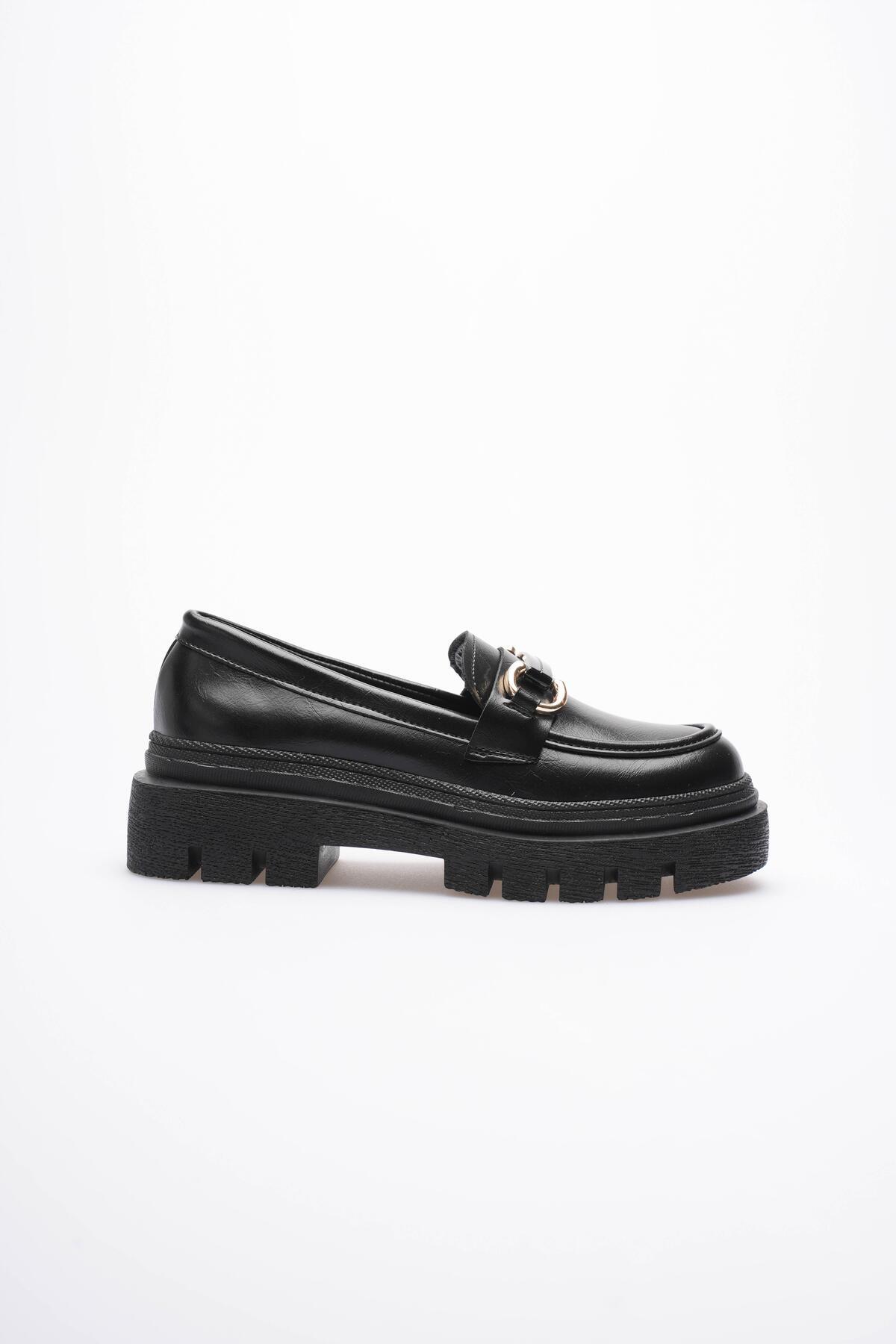 Kadın Deri Loafer Oxford Kalın Comfort Tabanlı Toka Detaylı Siyah Auren