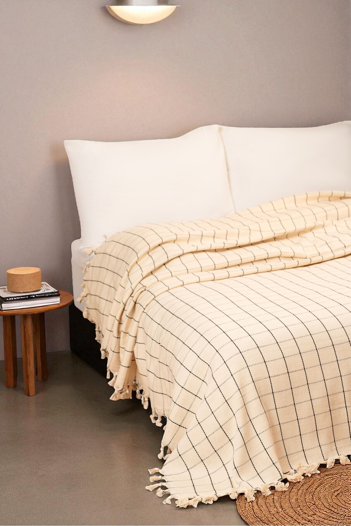 Doğal Pamuk, Yumuşak Tek Kişilik Pike, Koltuk Örtüsü, Çok Amaçlı Örtü 160x220 Cm.