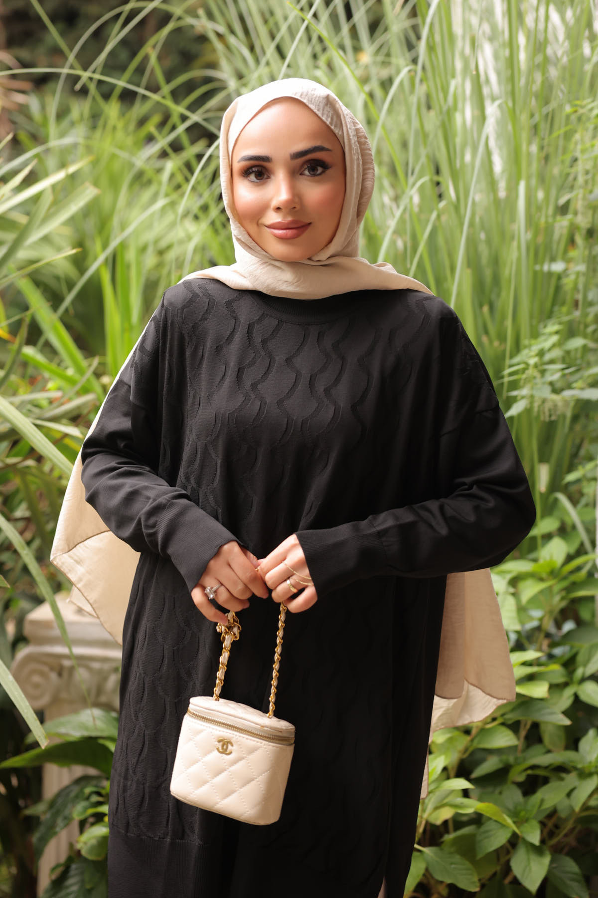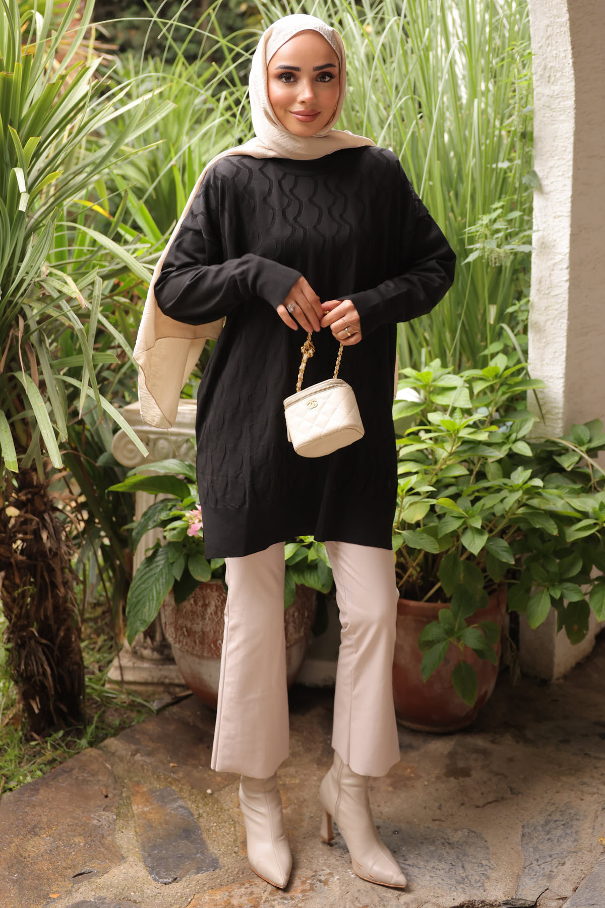 - Dokuma detayları ile zenginleştirilmiş bu tunik, tesettür giyim koleksiyonunuzda yerini alacak şık bir parça olarak öne çıkar.