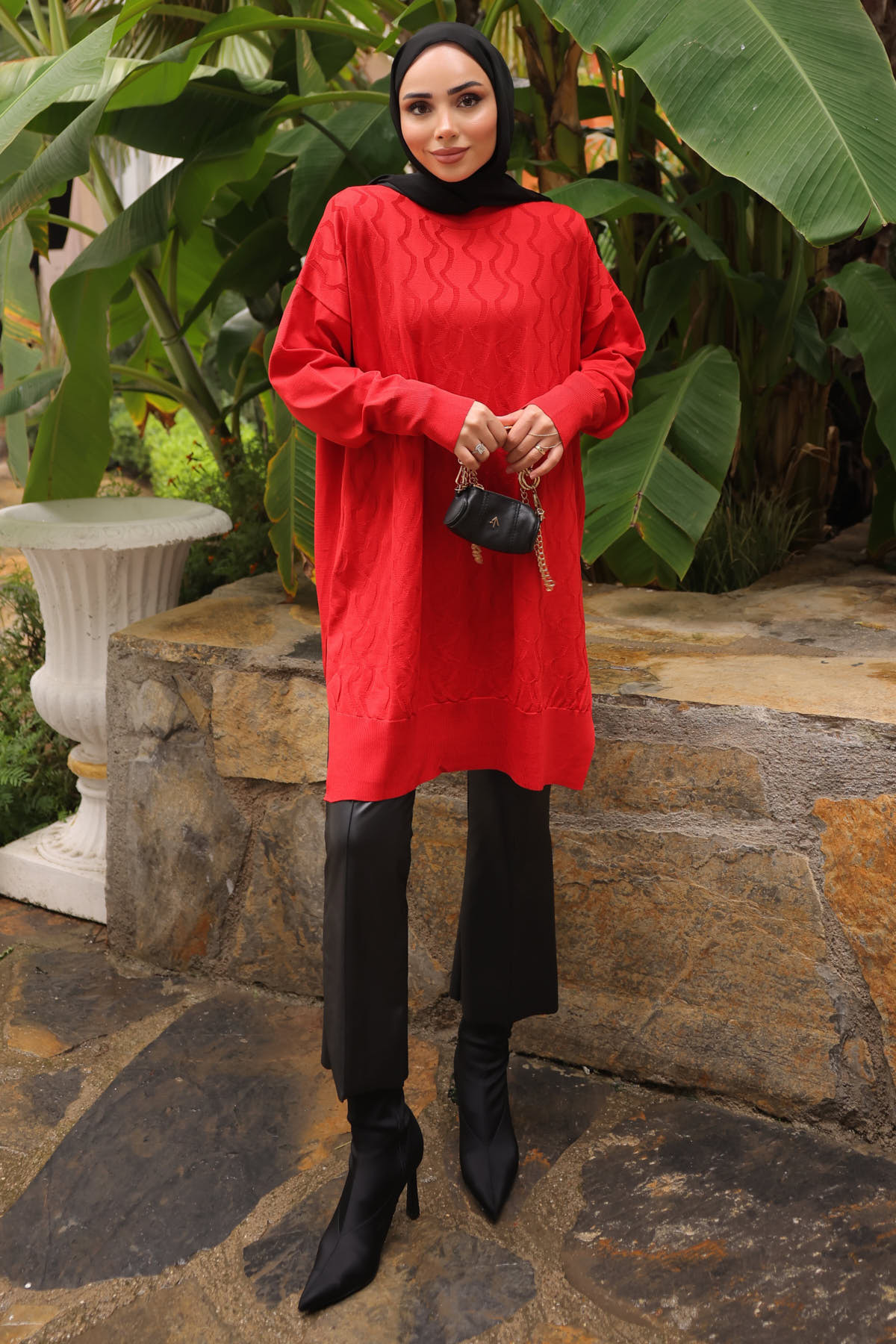 Bordo Bisiklet Yaka Soğuk İplik Triko Tunik