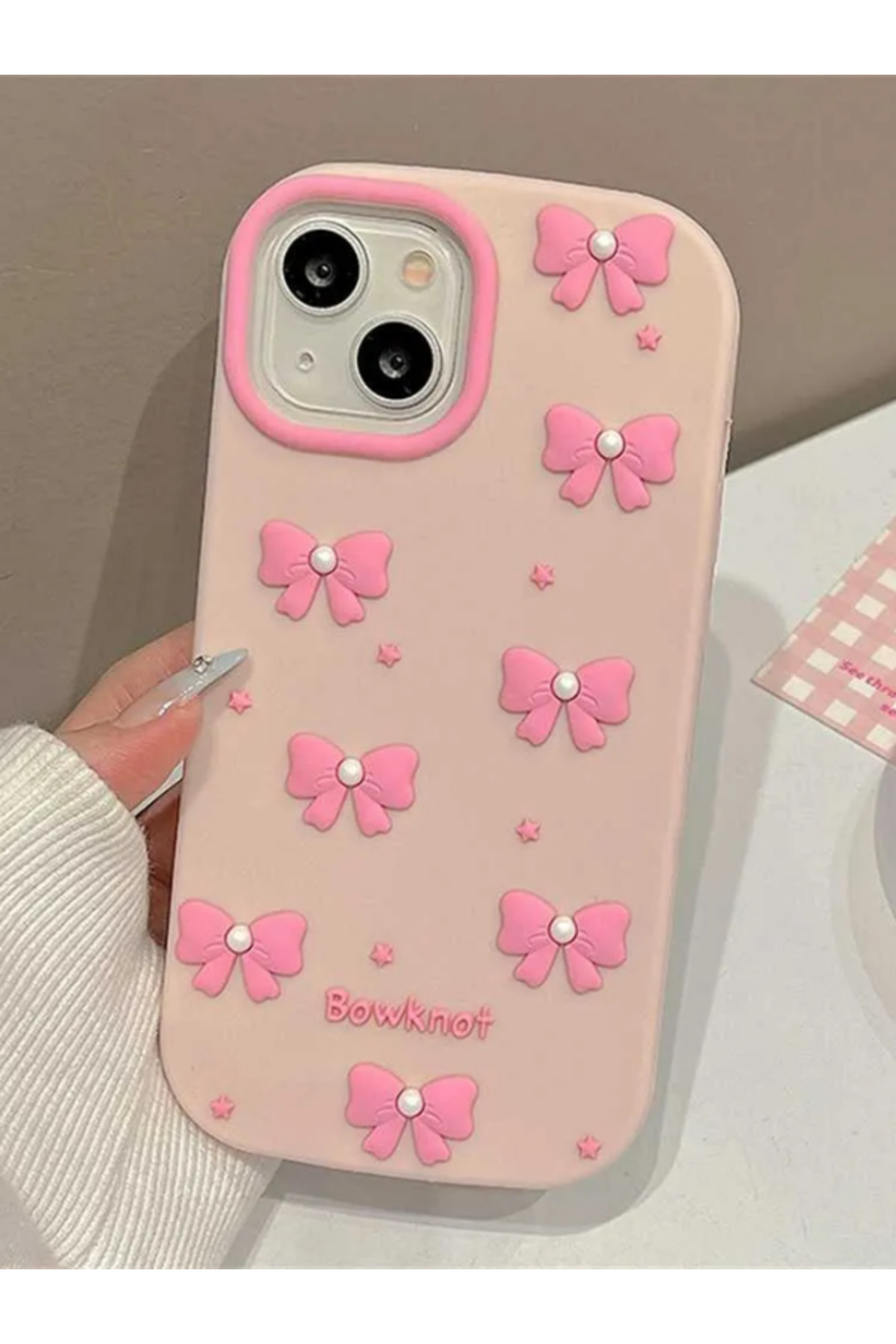 iPhone 13 / 14 / 15 Uyumlu Pembe Fiyonk Desenli Kabartmalı Yumuşak Silikon Kılıf