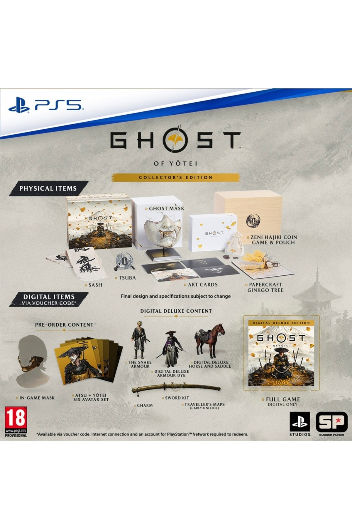 Ghost of Yotei Collector'S Edition Playstation 5 Shipping Box Kutuda ilk açan siz olucaksınız Playstation 5 cihazı değildir oyuna ayit Figürler ve Oyunun Digital indirme kodu çıkar DİKKAT !!! Güvenlik bantı Mühürü yada jelatini açılmış oyunların iadesi yapılmamaktadır Kutu içeriği