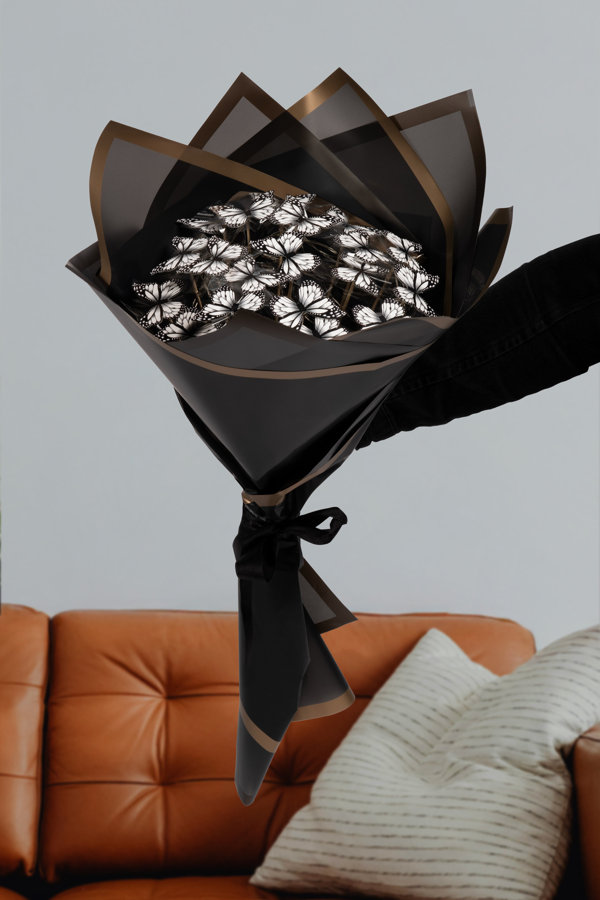 Led Işıklı Siyah Kelebek Buketi , Dekoratif Konsept Hediye Anneye,Sevgiliye,arkadaşa