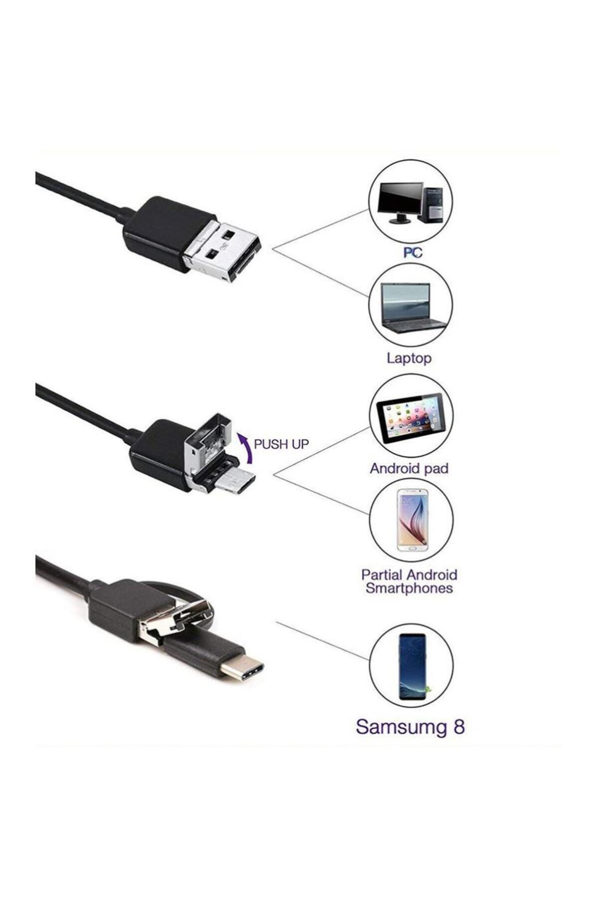Endoskop 3 in 1 Yılan Kamera USB Micro Usb Type-C 2M Sert Kablo