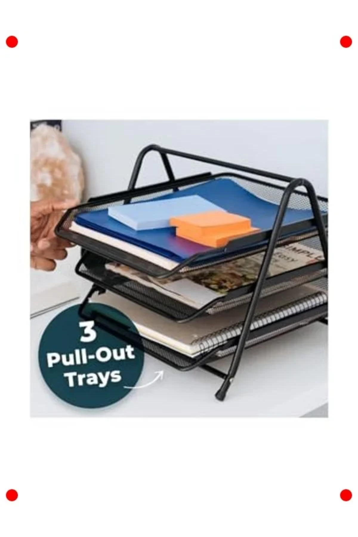 Masanızdaki karmaşayı sona erdirmek ve çalışma alanınızı düzenlemek için ideal olan bu 3 katlı metal tel evrak rafı, ofis veya ev kullanımı için mükemmeldir.