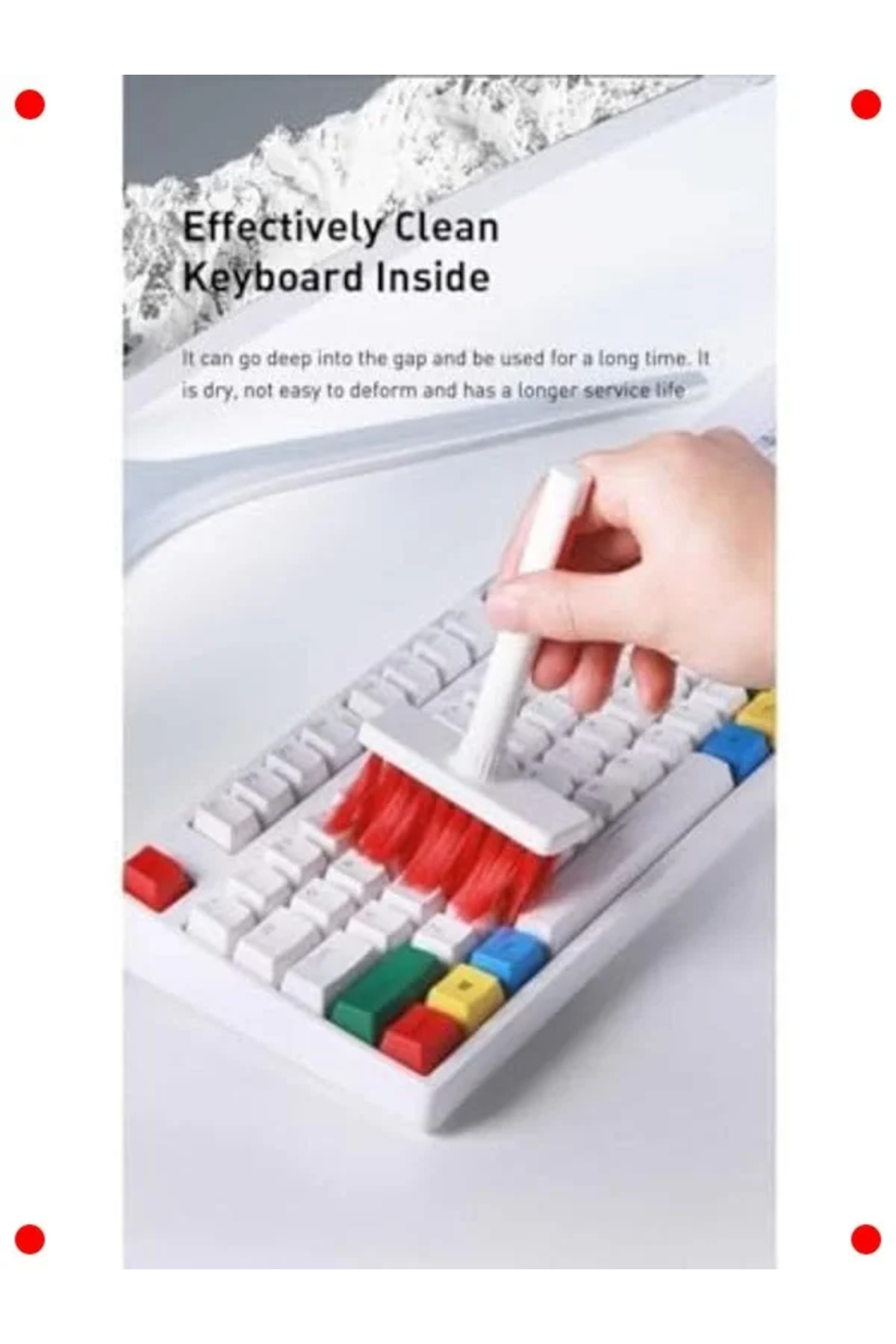 Yumuşak klavye fırçası, kulaklık temizleyici ucu, ekran temizleme spreyi, mikrofiber bez ve tuş sökme aparatı gibi farklı araçlar içerir.
