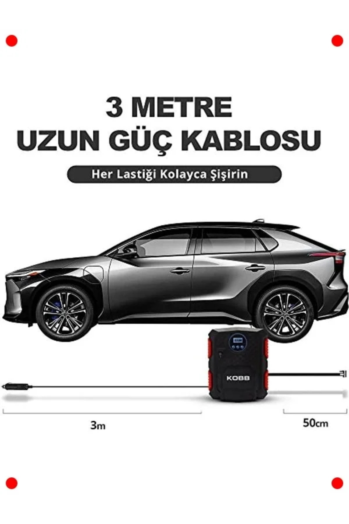 Kompakt tasarımı sayesinde aracınızda her zaman bulundurabileceğiniz bu pompa, acil durumlar ve rutin bakım için pratik bir çözümdür.
