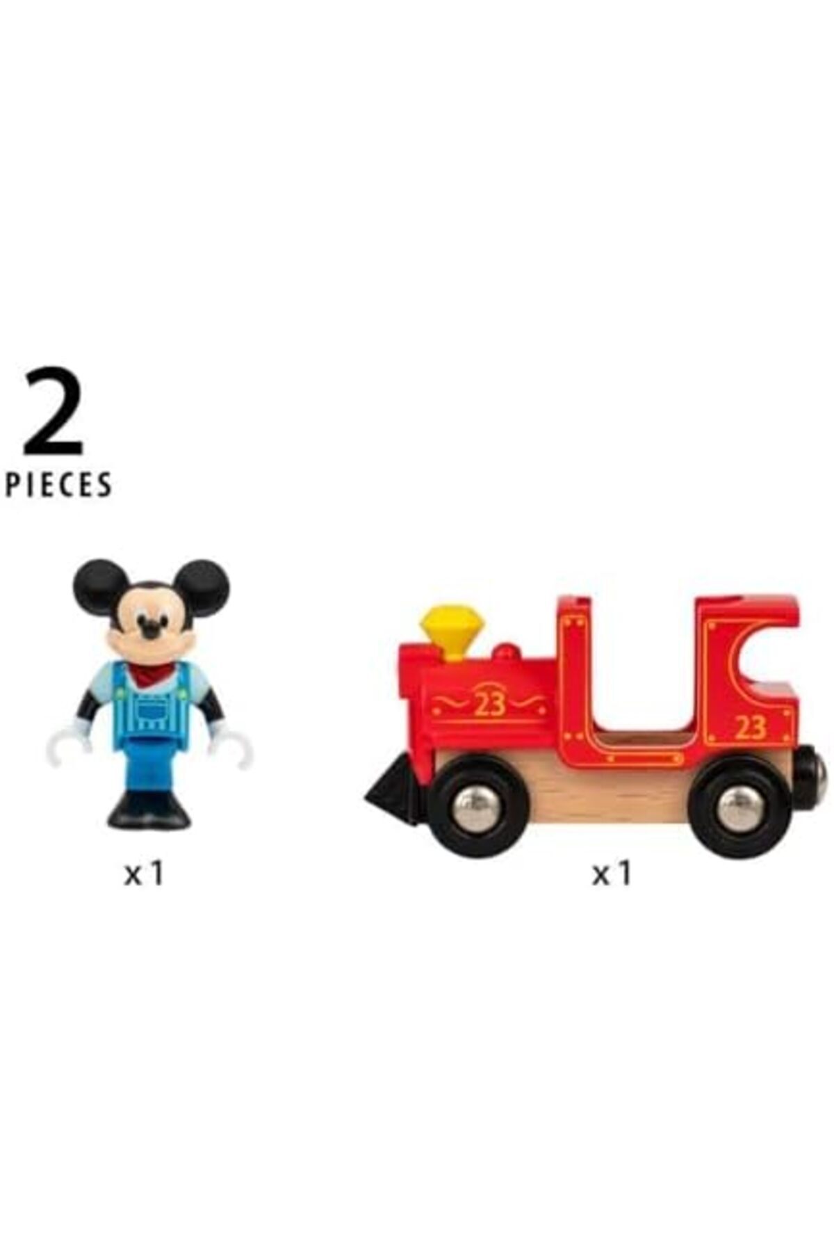 Kırmızı buharlı tren Mouse'u heyecan verici bir demiryolu ması makinist üniformasıyla bir Mouse karakteri WD Lokomotif, Oyuncak