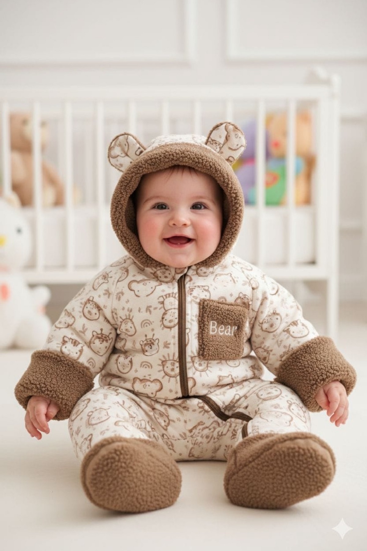 Yeni Trend Pamuklu Sevimli Bear Baskılı Yenidoğan Welsoft Patikli Kozmonot-Tulumu