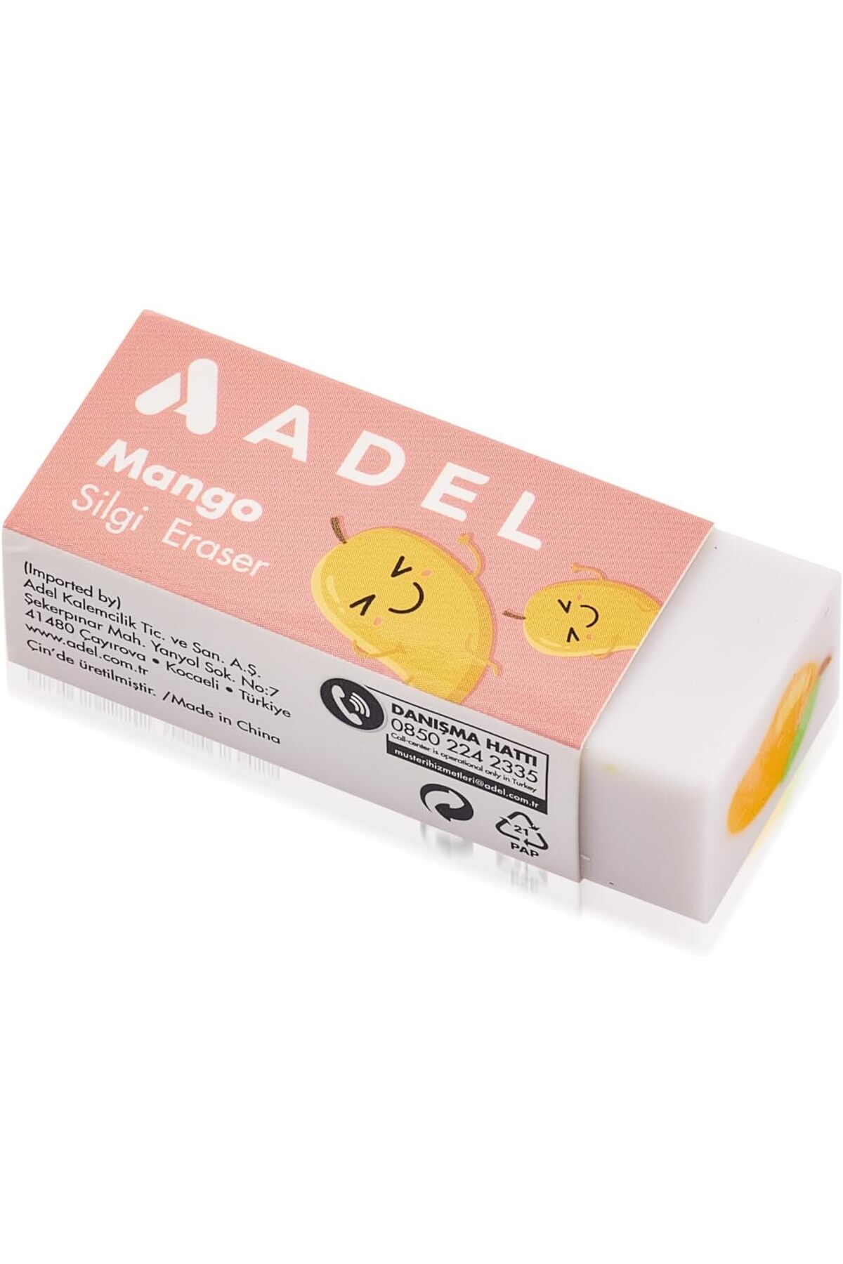 ve test kağıdı üzerindeki kurşun izlerini silmek için uygundur, İçinde boydan uzanan ve silindiğinde kaybolmayan mango deseni vardır, Her bir silgi bandrollü ve jeffaf jelatin ambalajdadır Mango Silgi 32'li