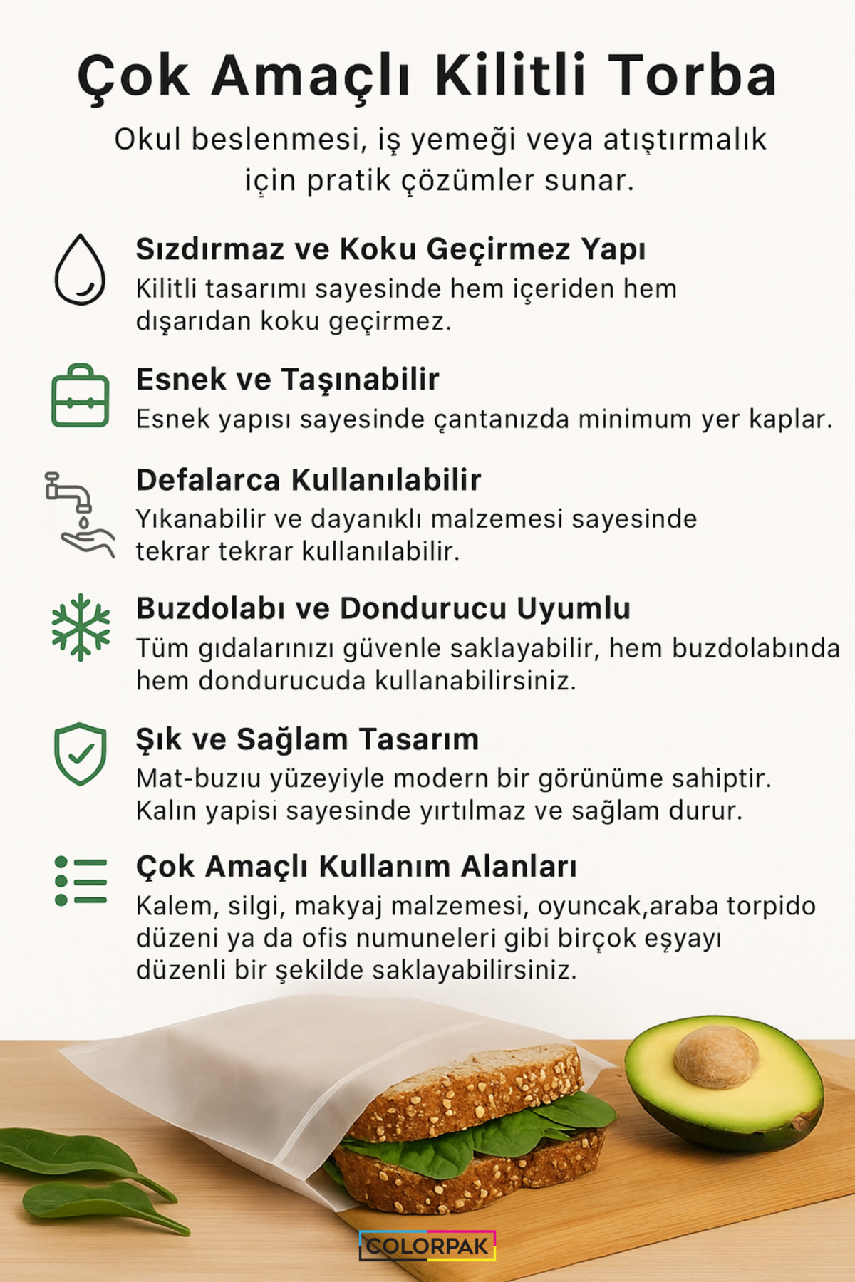 Çok Amaçlı Kilitli Torba (10 Adet) 23x31 cm kilitli kalın buzdolabı poşeti sandviç beslenme torbası