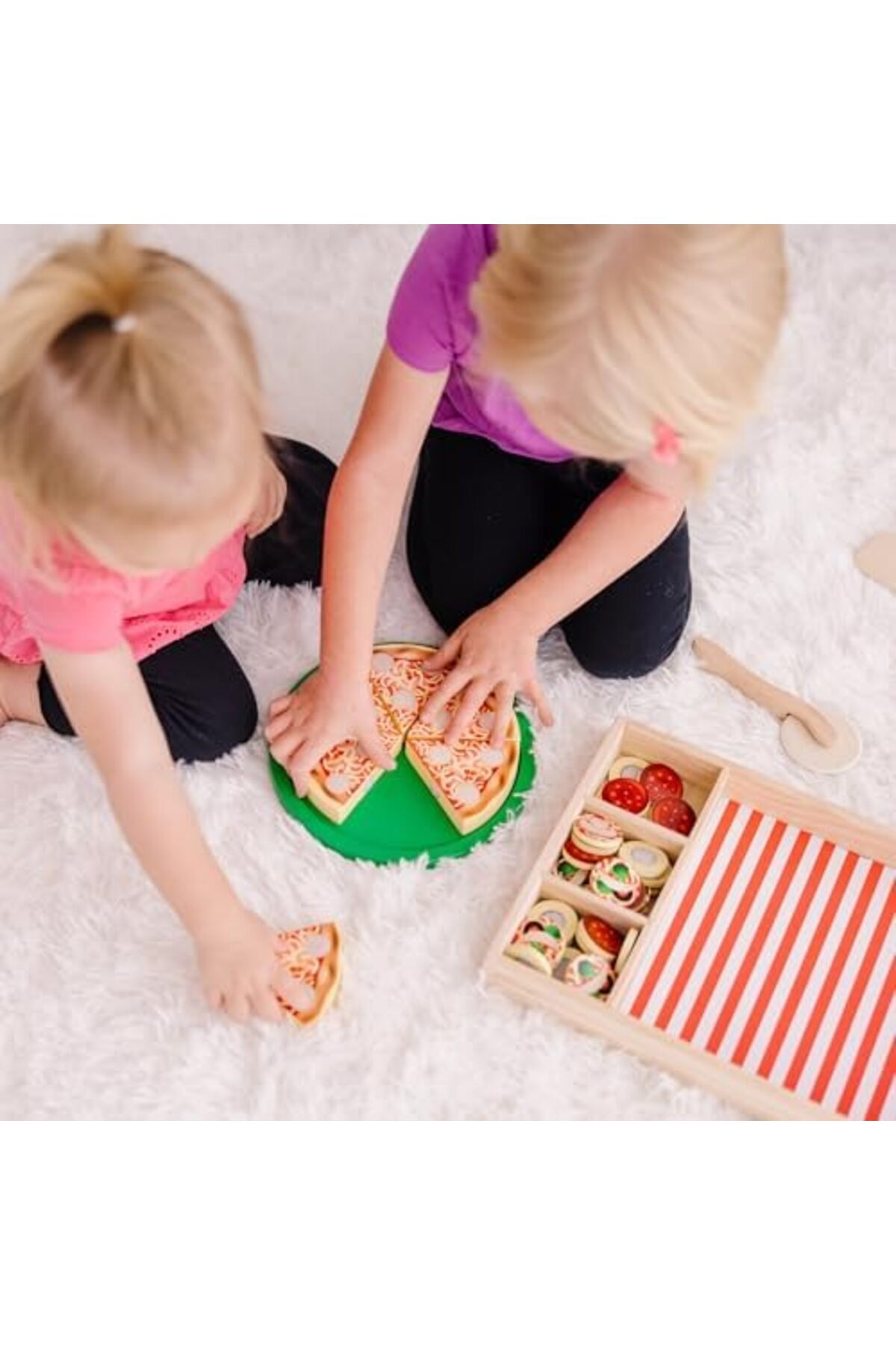 Ahşap kutu içerisinde 45 parçalı pizza seti Ahşap kutu, servis tablası, pizza dilimleri, değiştirilebilir pizza malzemeleri, pizza bıçağı ve spatula Pizza dilimlenirken kesme sesi çıkarır Birliği ve ABD oyuncak standartlarına uygundur Önerilen yaş: 3+ & Doug - Ahşap Pizza Partisi (10167)