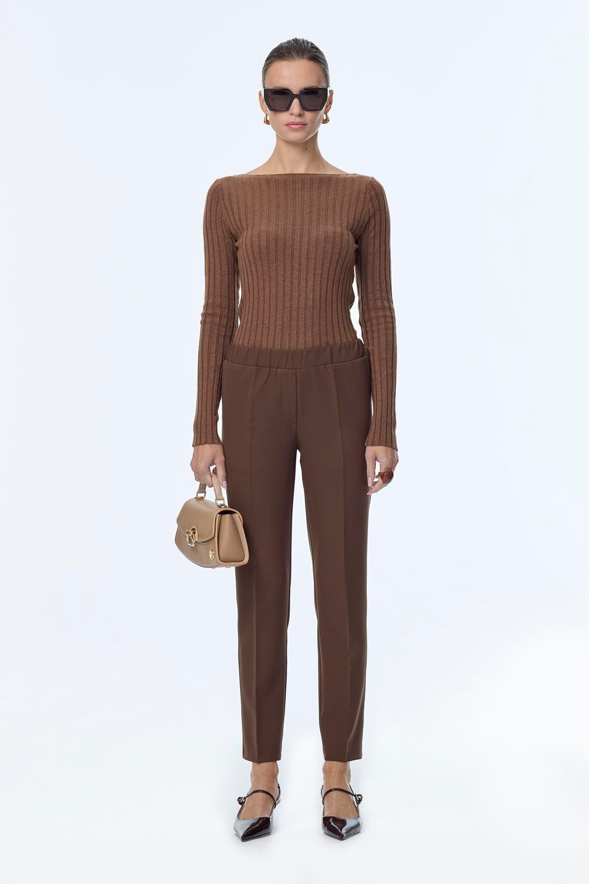 Dar Paça Beli Lastikli Kahve Kumaş Pantolon P-0148