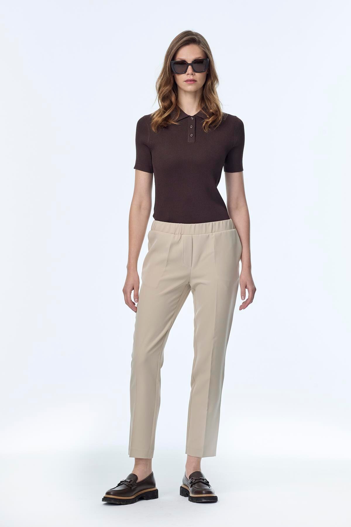 Dar Paça Beli Lastikli Vizon Kumaş Pantolon P-0148