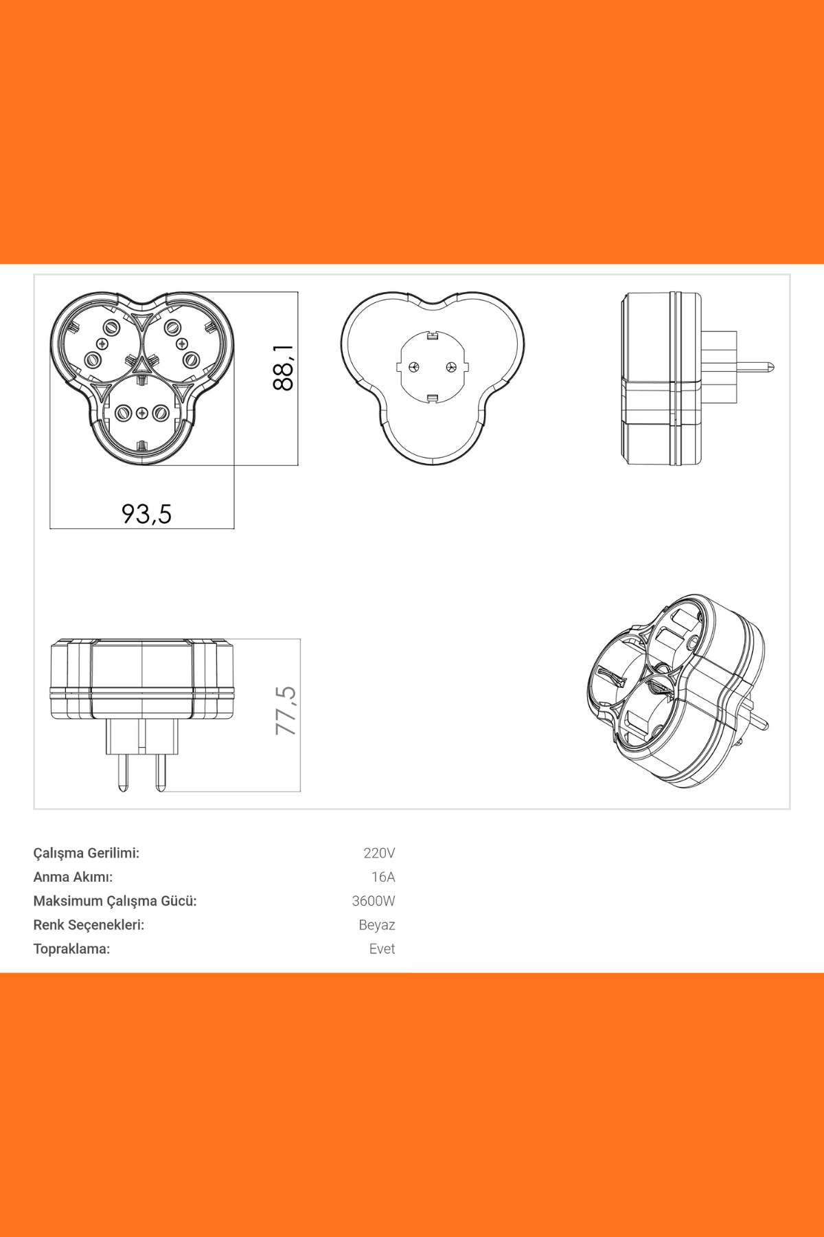 3’lü Priz Topraklı 3lü Papatya Golyat Priz, 3x Çoklu Priz