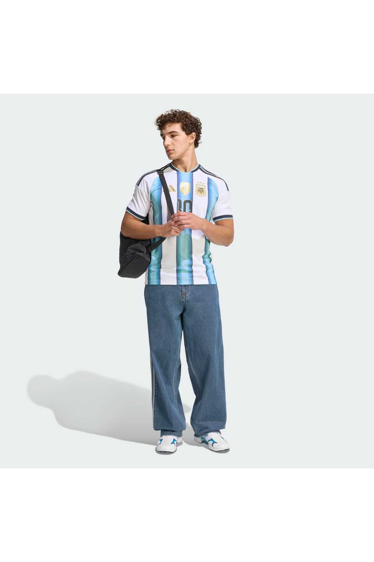 böylece yoğun maçlarda bile kendini ferah, odaklanmış ve hazır hissedebilirsin. Dar kesimiyle ince ve atletik bir görünüm sunan model, kendinden emin ve özgürce hareket etmeni sağlar. Dayanıklılık ve konfor sunan dokuma kumaş, formayı birçok aktivite için harika bir seçenek haline getirir. Bu formayla Dünya Şampiyonlarının ruhunu kucakla. İster sahada ol ister tribünlerden tezahürat et, bu forma seni Arjantin futbolunun kalbine bağlar.