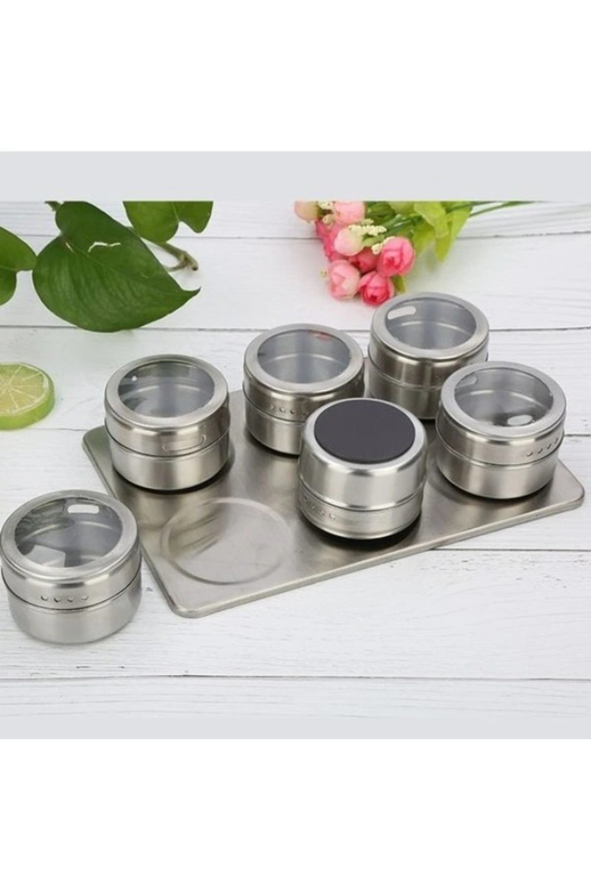 Paket İçeriği6 adet mıknatıslı baharat kabı1 adet metal tabla