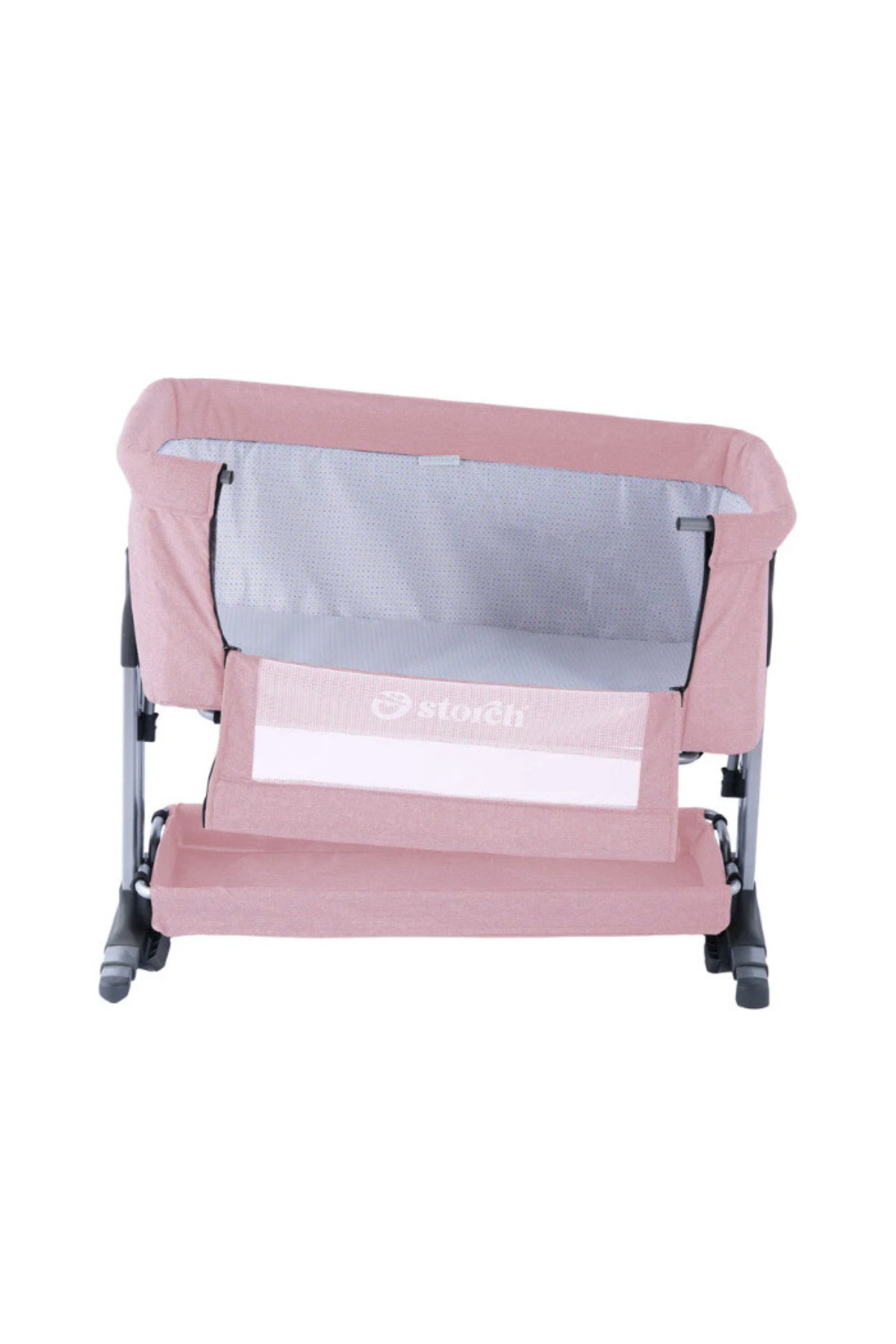 Baby Storch - Sallanabilir Anne Yanı Portatif Beşik - Yükseklik Ayarlı, Cibinlik Ve Tekerlekli-Pembe