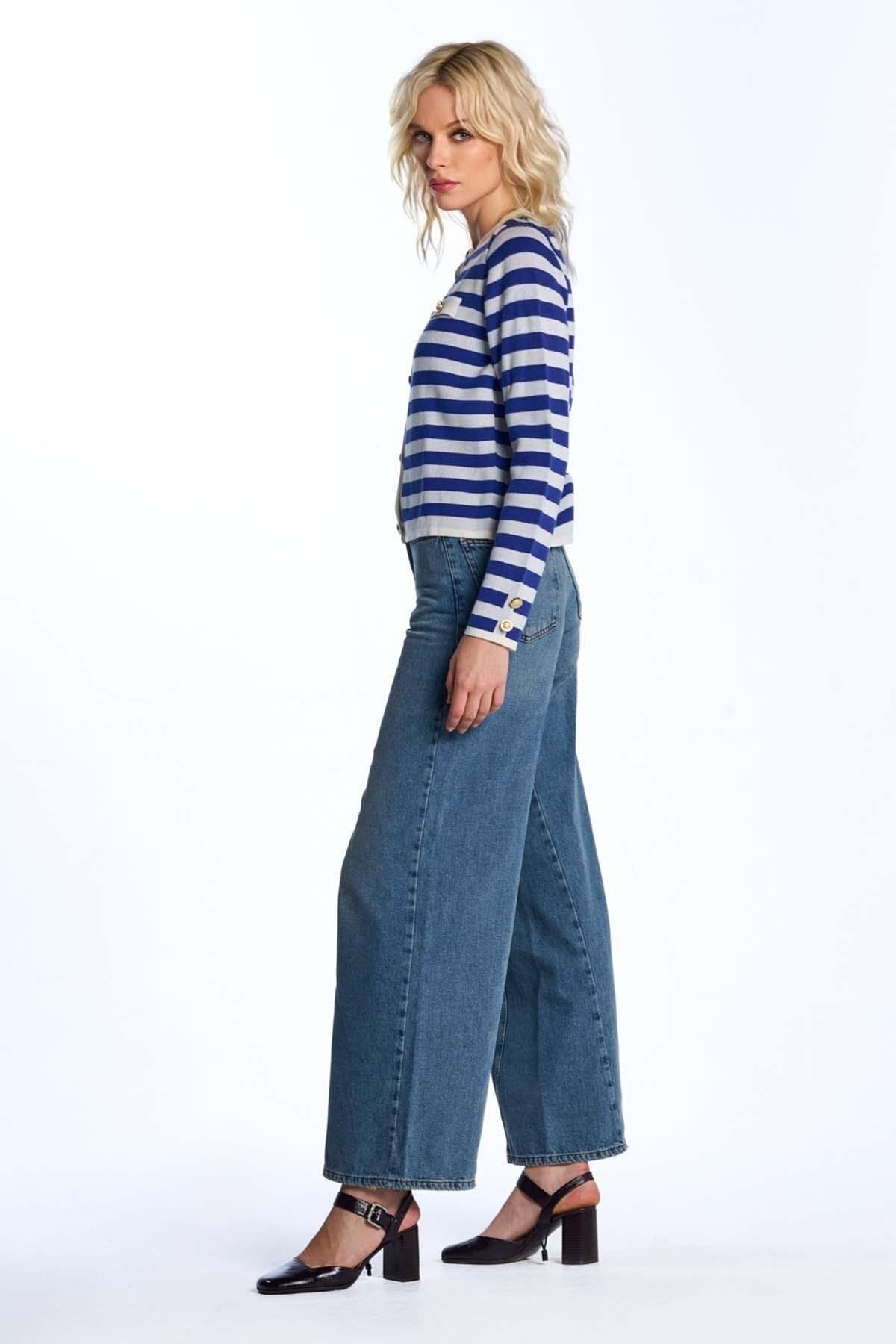 Saks Düğme Detaylı Çizgili Triko Kazak