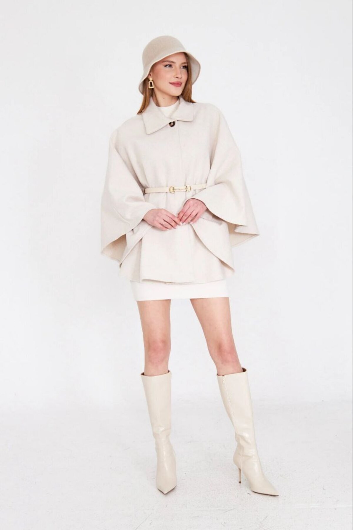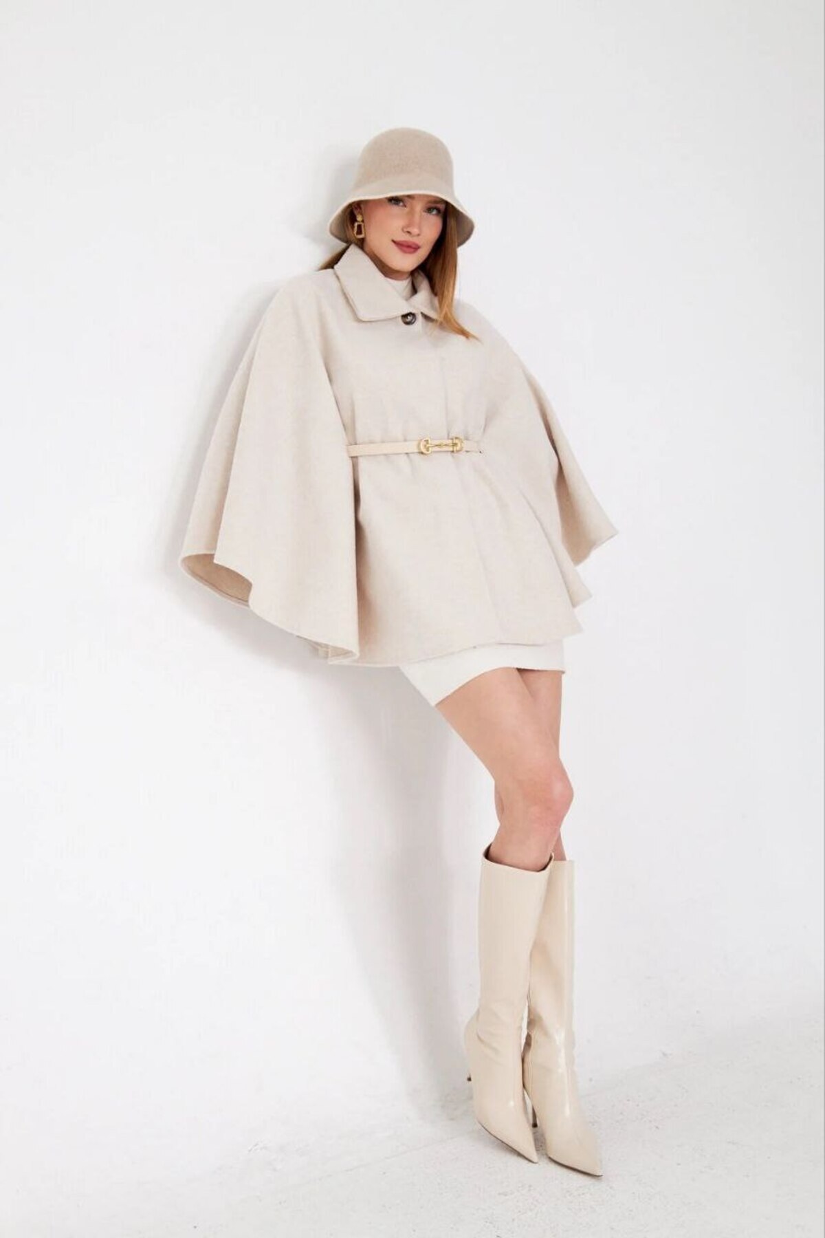 - Şık ve modern tasarımıyla her ortamda dikkat çeken panço, düz deseniyle sade bir zarafet sunar.