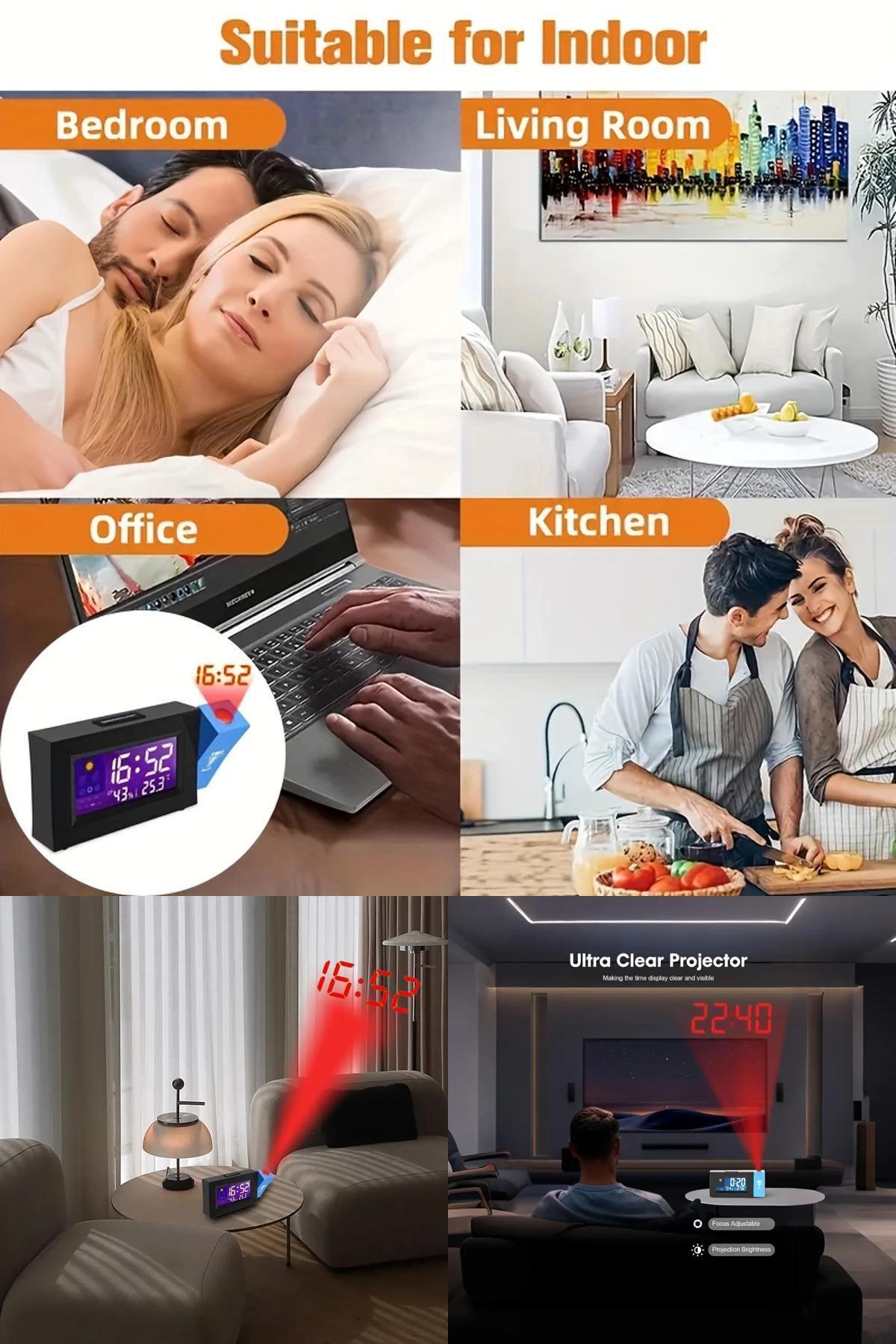 Djital Ekranlı Projeksiyon Duvara Zaman Yansıtan Alarm Saat LCD Ekranlı,USB Destekli, Modern Tasarım