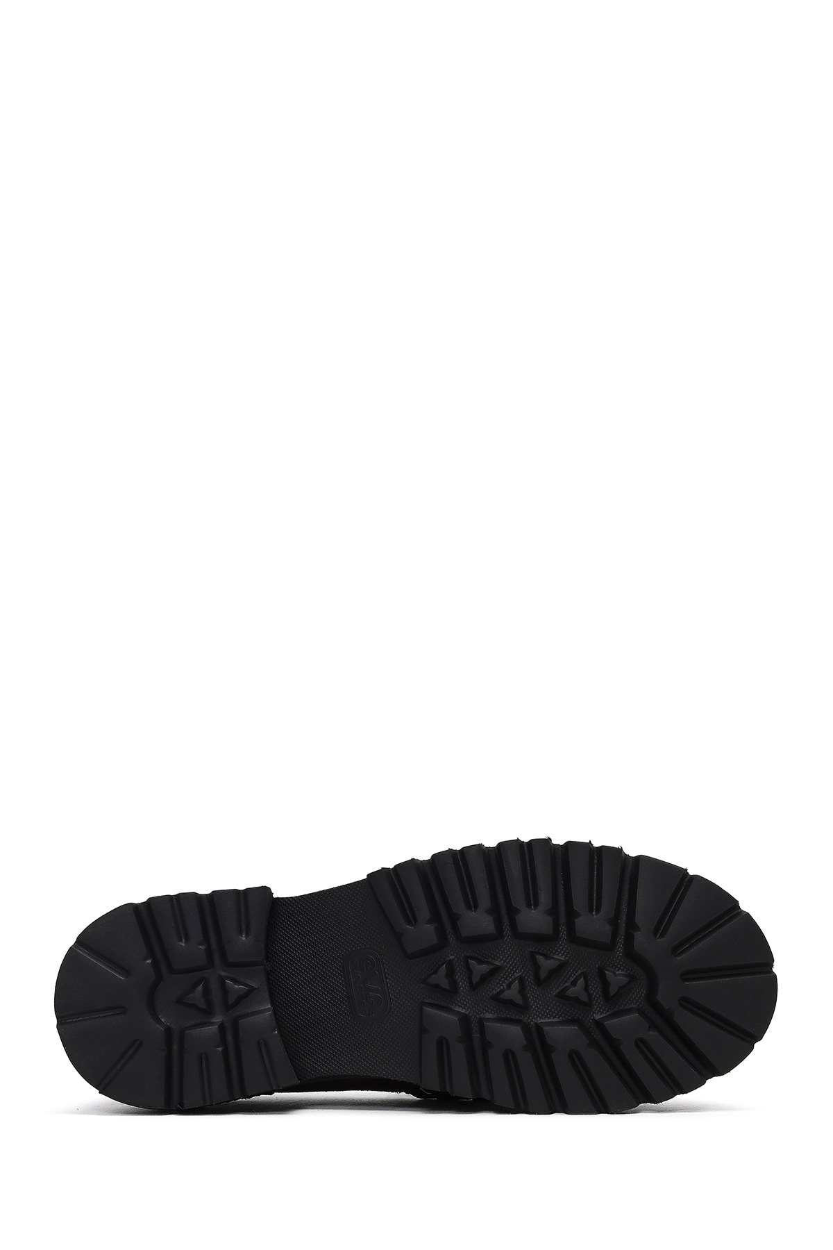 Kadın Kahverengi Kalın Tabanlı Süet Deri Loafer Sığır derisi içermektedir.