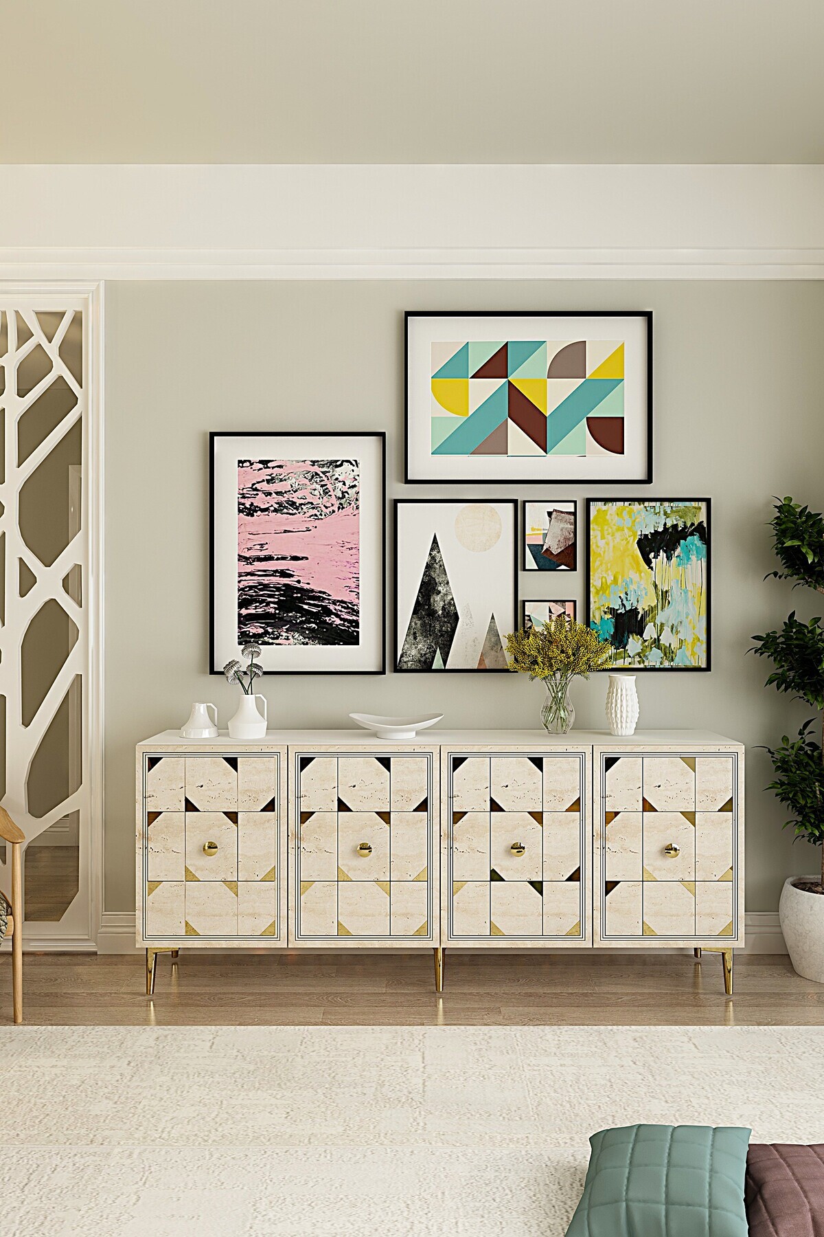 - 180 cm genişliğindeki bu konsol, geniş rafları ve kapaklı bölmesiyle çok amaçlı kullanım sunar