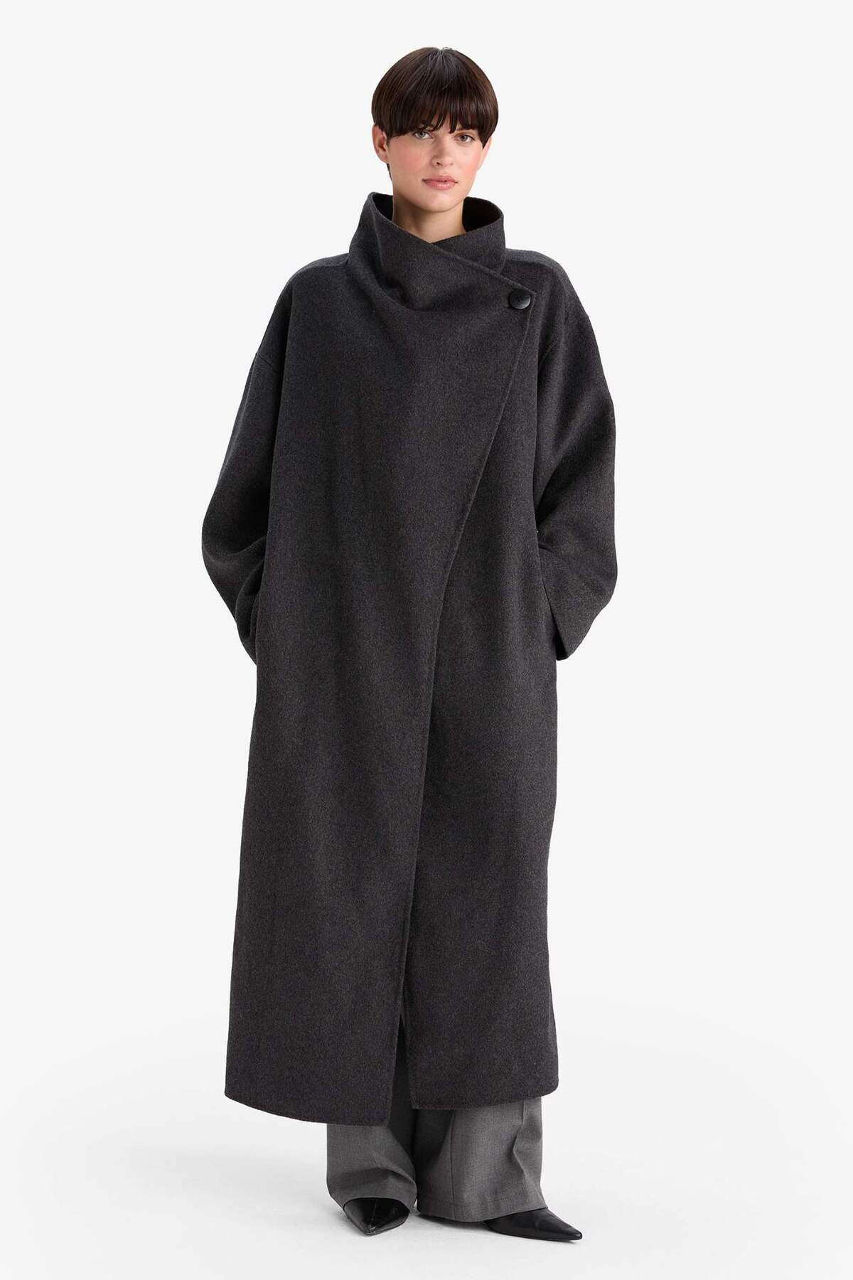 Regular fit kesimi ve düğmeli tasarımıyla bu uzun kaşe kaban, şık ve sıcak bir kullanım sunar.