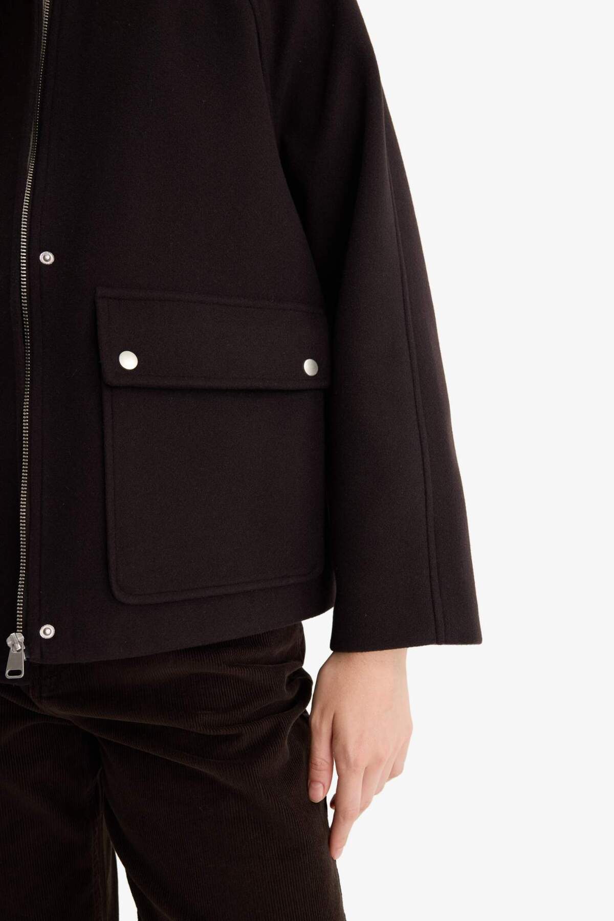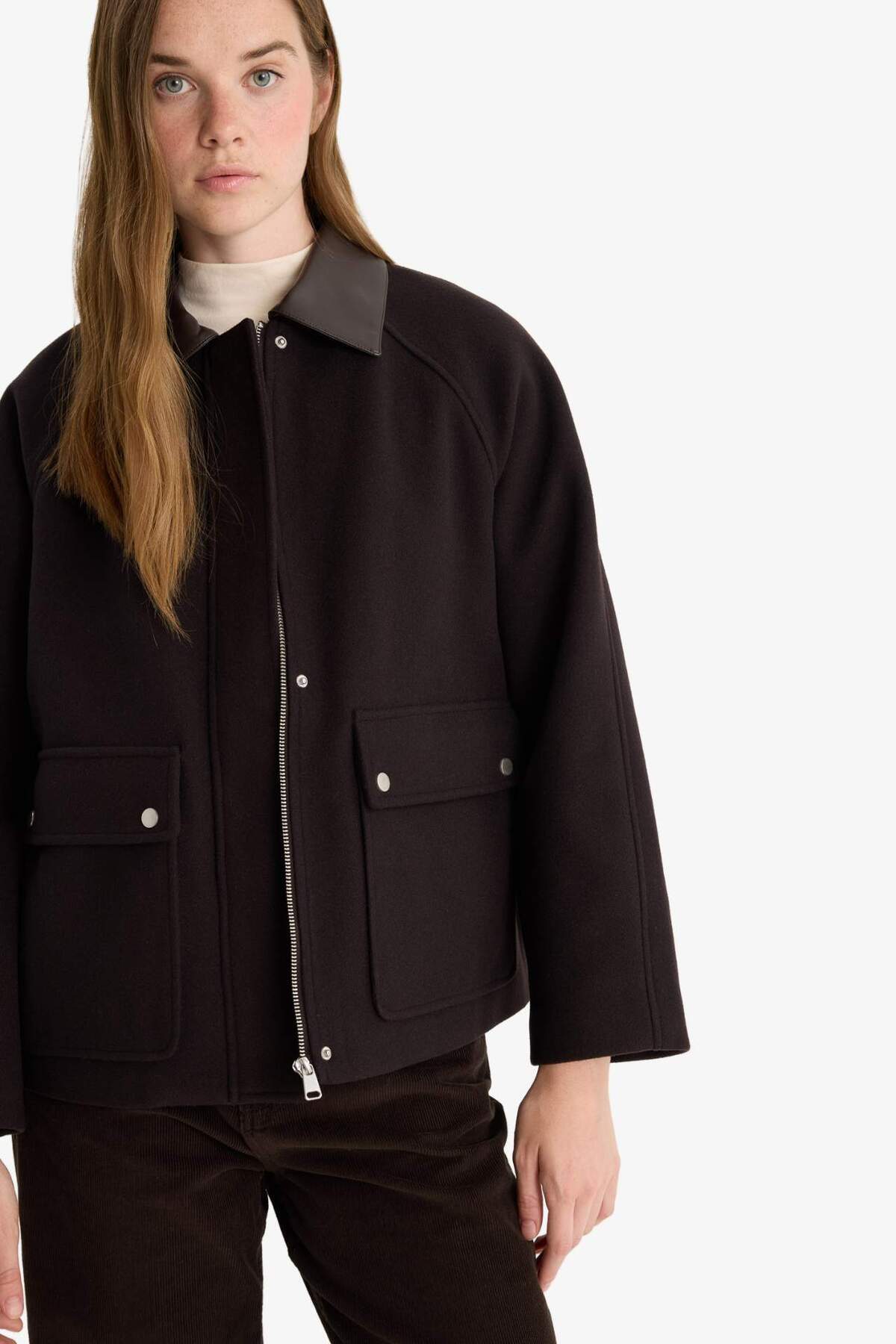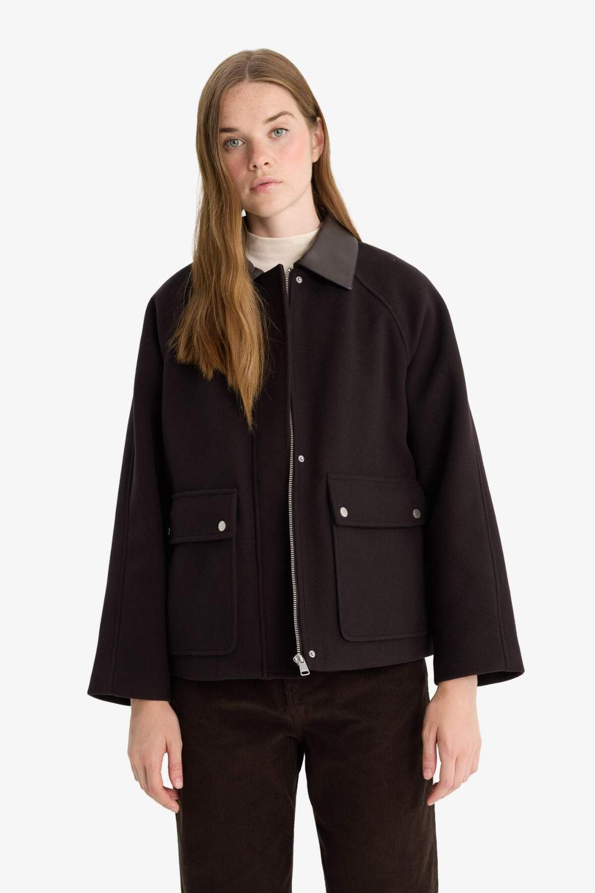 Polo yaka ve fermuarlı tasarımıyla bu regular fit kaşe mont, klasik ve modern tarzı bir arada sunar.