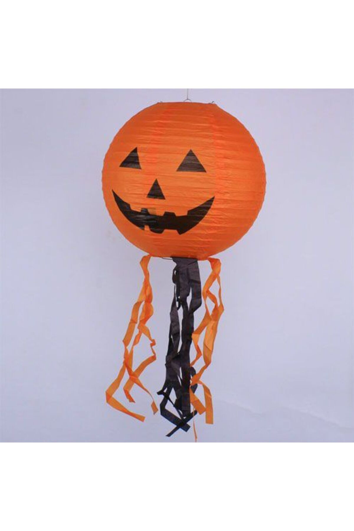 Balkabağı Kağıt Japon Led Süs - Kabak Dekor Yuvarlak Fener Süs 25 cm