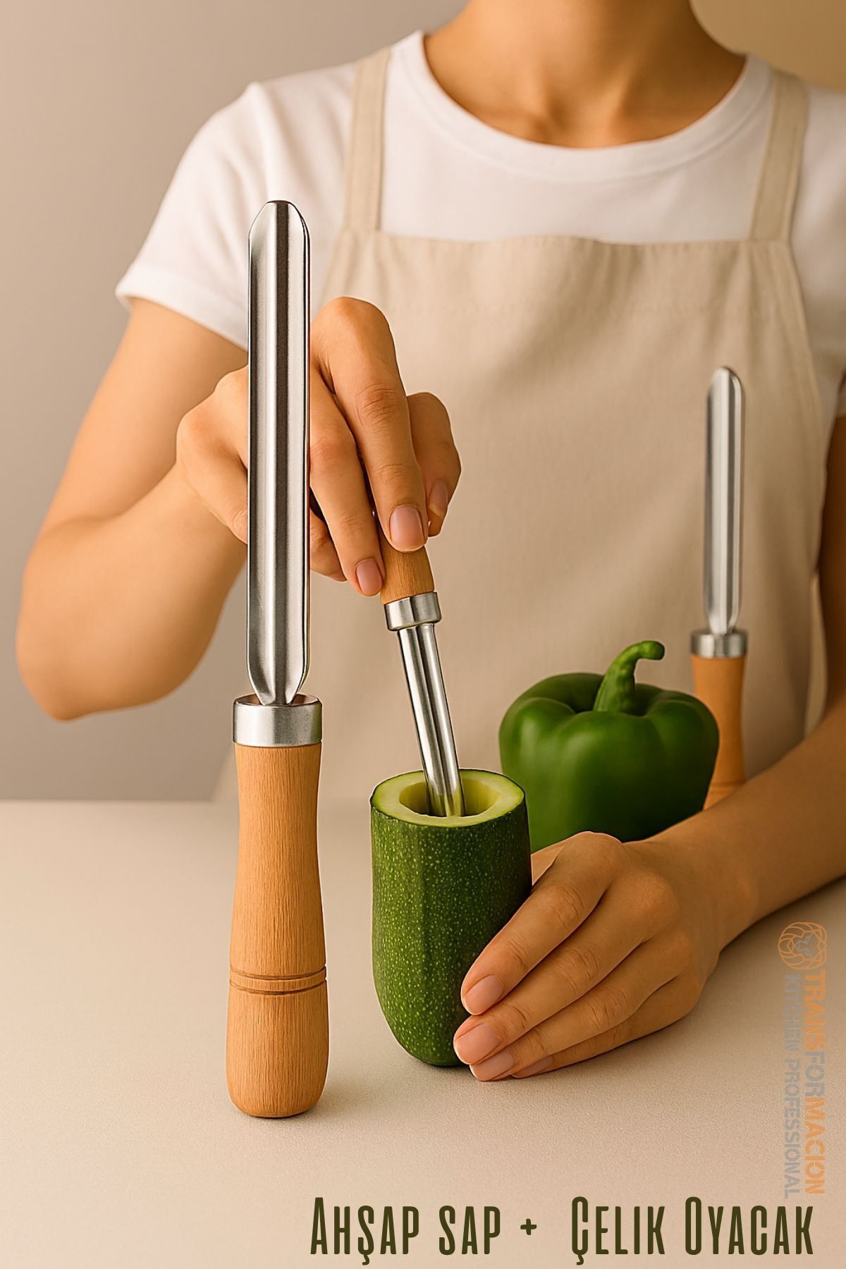 Tekli Ahşap Saplı Kabak ve Domates Oyacağı – Paslanmaz Çelik Sebze Oyma Aparatı