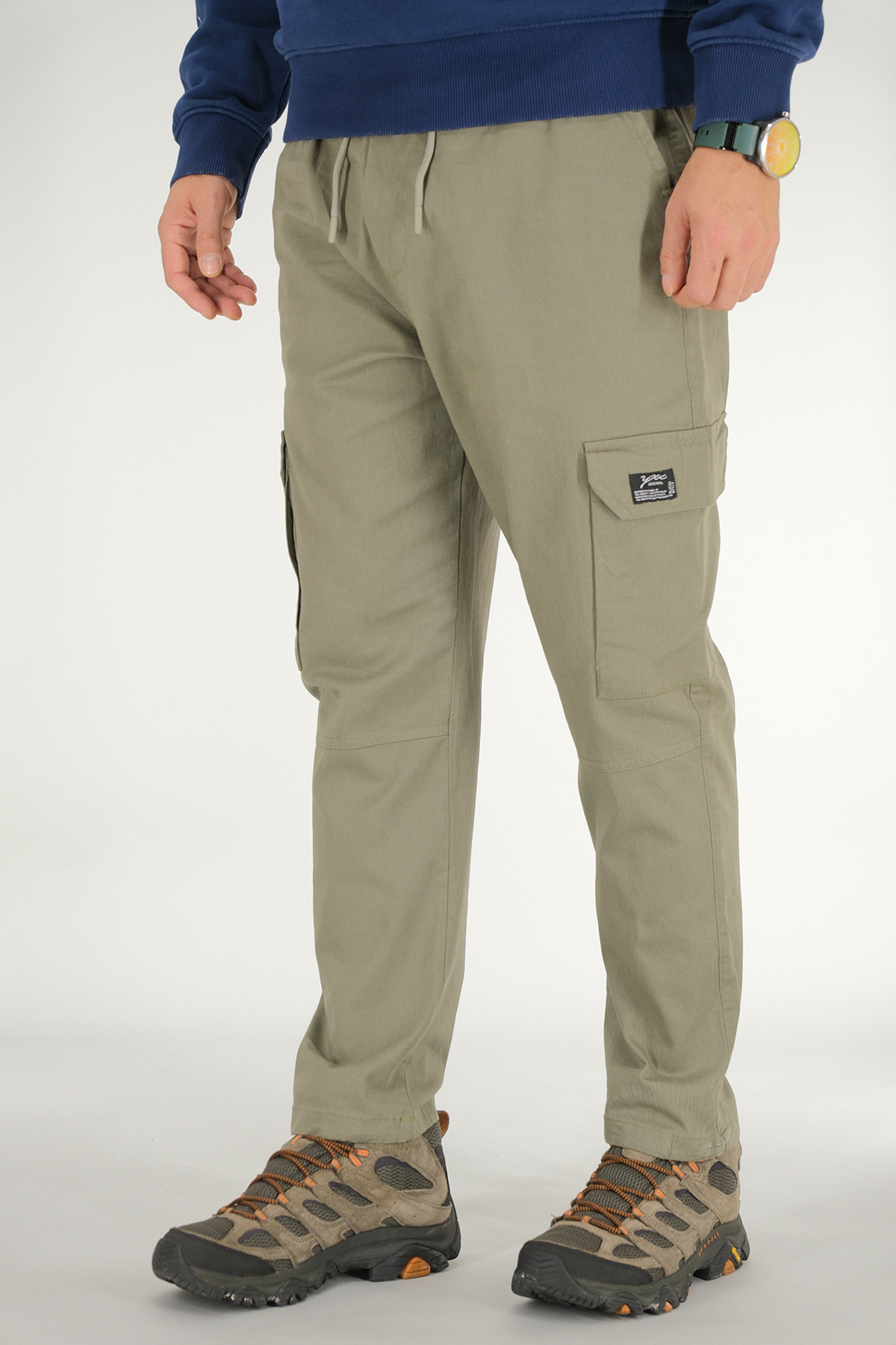 Erkek Açık Haki Kargo Pantolon Rahat Kesim Pamuklu Lastikli Bel