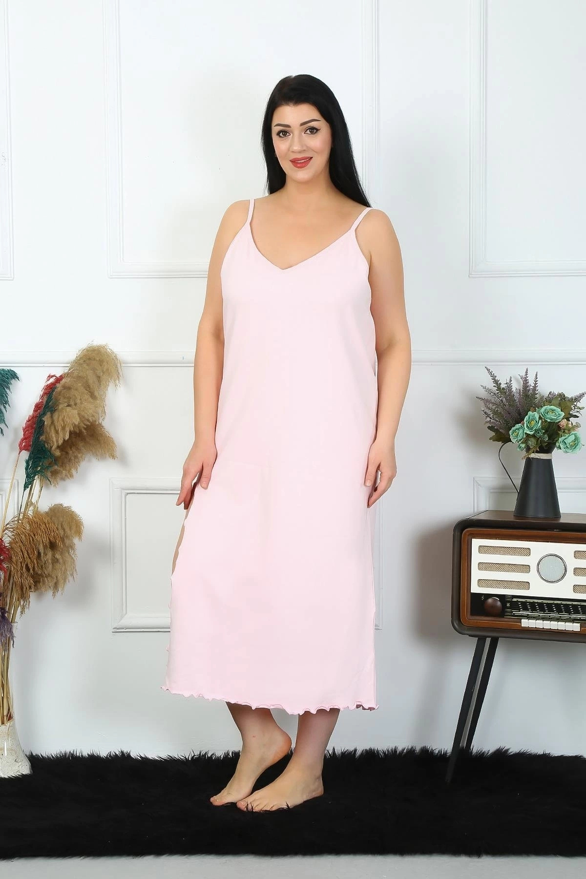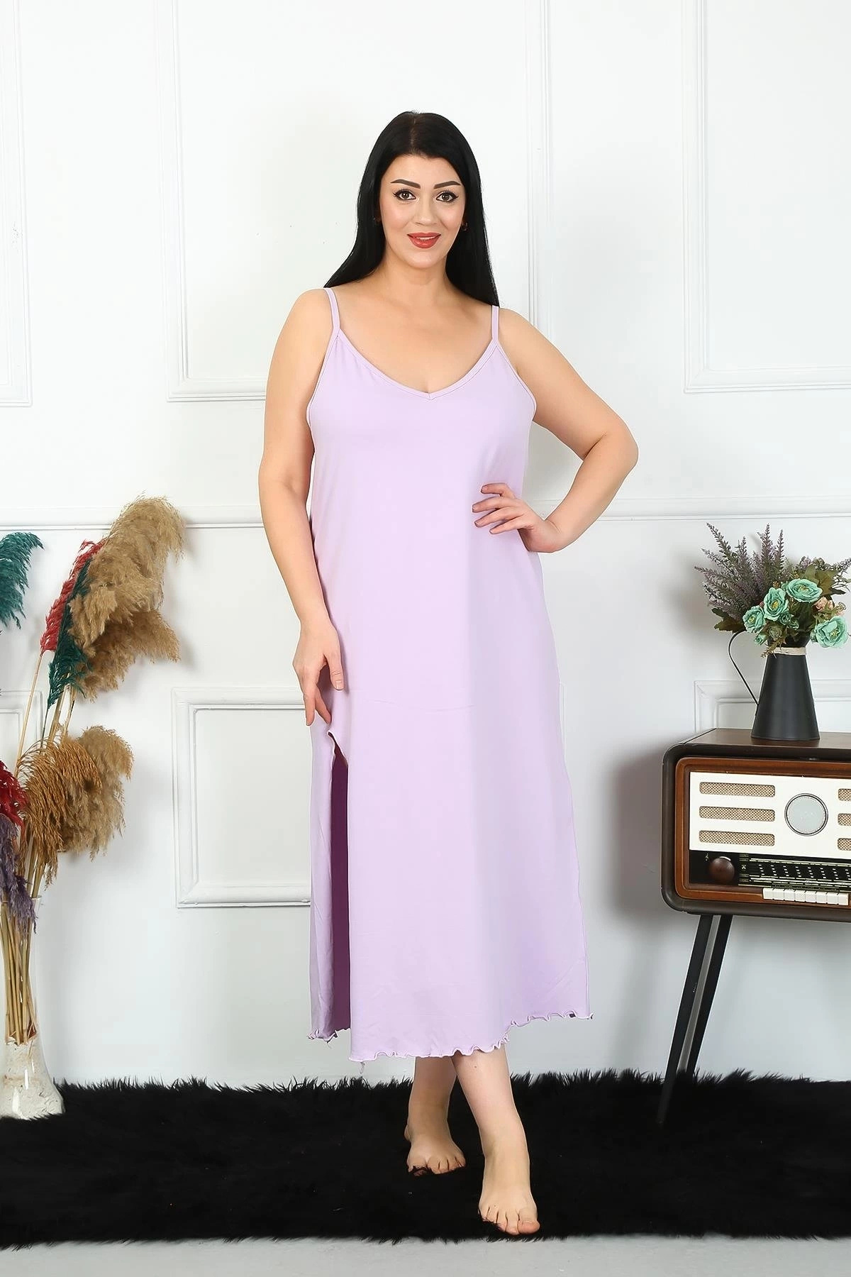 Giyim Kadın Büyük Beden İp Askılı Pamuklu Lila Uzun Gecelik