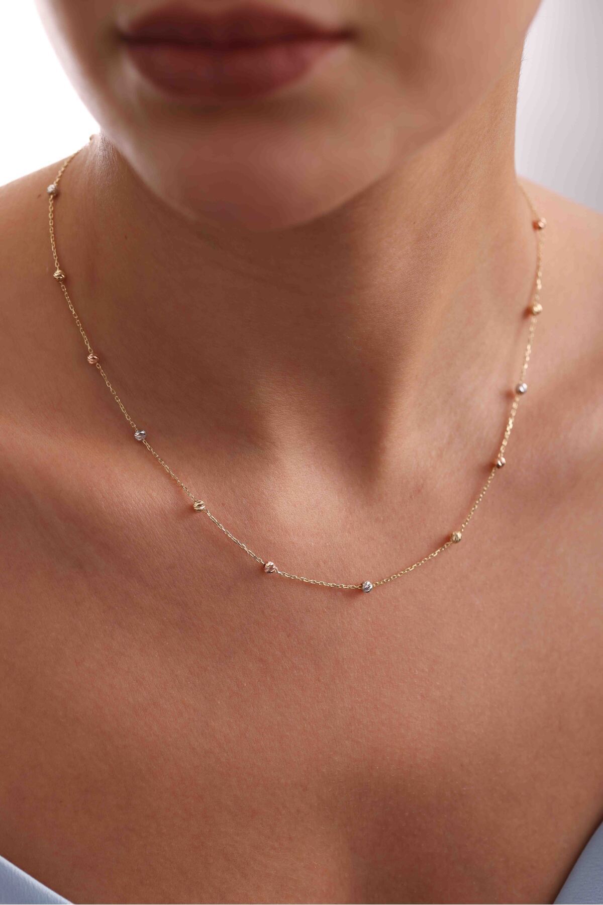 14 Ayar Altın Zarif Zincirli 3 Renk Dorika Kolye