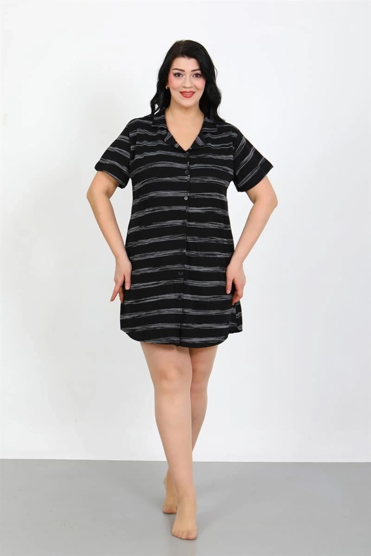 Giyim Büyük Beden Penye Düğmeli Siyah Tunik Gecelik